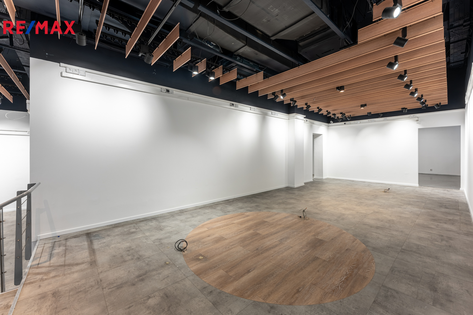 Prostor se skládá ze dvou na sebe navazujících větších a prosklených showroomů, dvěma kanceláři a kompletní zázemí s prostornou kuchyňkou , toaletami, úklidová místnost. Dále jsou v prostoru kompletně rozvedené datové sítě a spousta zásuvek jak ve stěnách tak v podlaze. Součástí pronájmu je i velká datová skříň pro servery a úložiště.