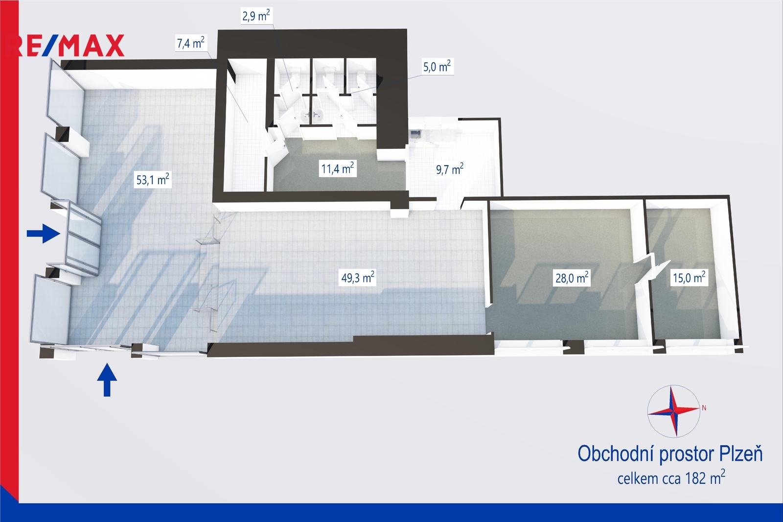 Výhradně nabízíme k pronájmu exkluzivní komerční prostor o celkové výměře 182,41 m², který se nachází v přízemí na jedné z nejfrekventovanějších ulic v samotném centru Plzně a to roh ulice Solní a Sedláčkova, přímo vedle hlavní pošty a tramvajové zastávky Hlavní pošta.