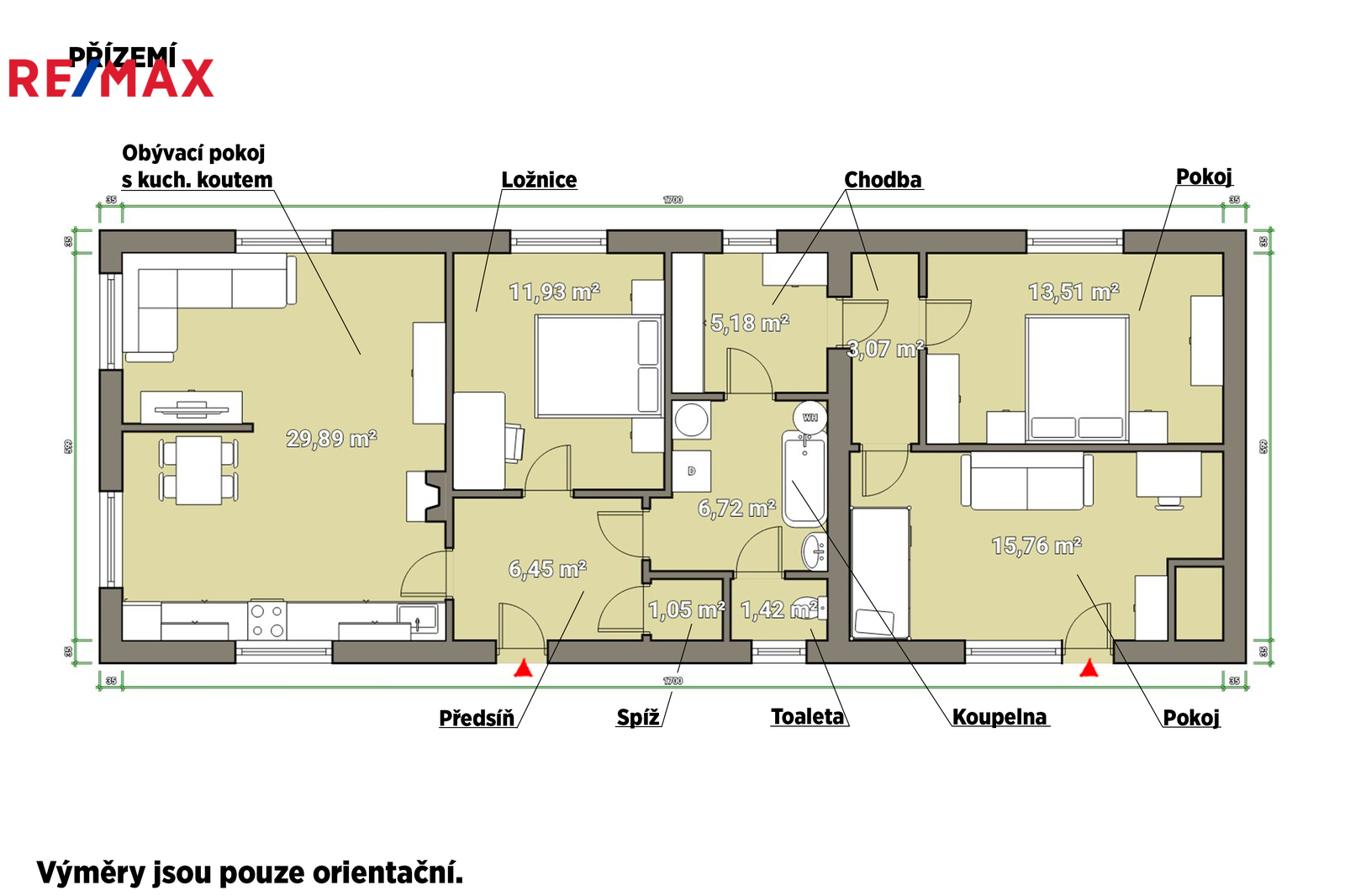 Další výhodou jsou půdní prostory o rozloze cca 120 m², které nabízejí možnost vytvoření dalších obytných místností podle vašich potřeb a představ.