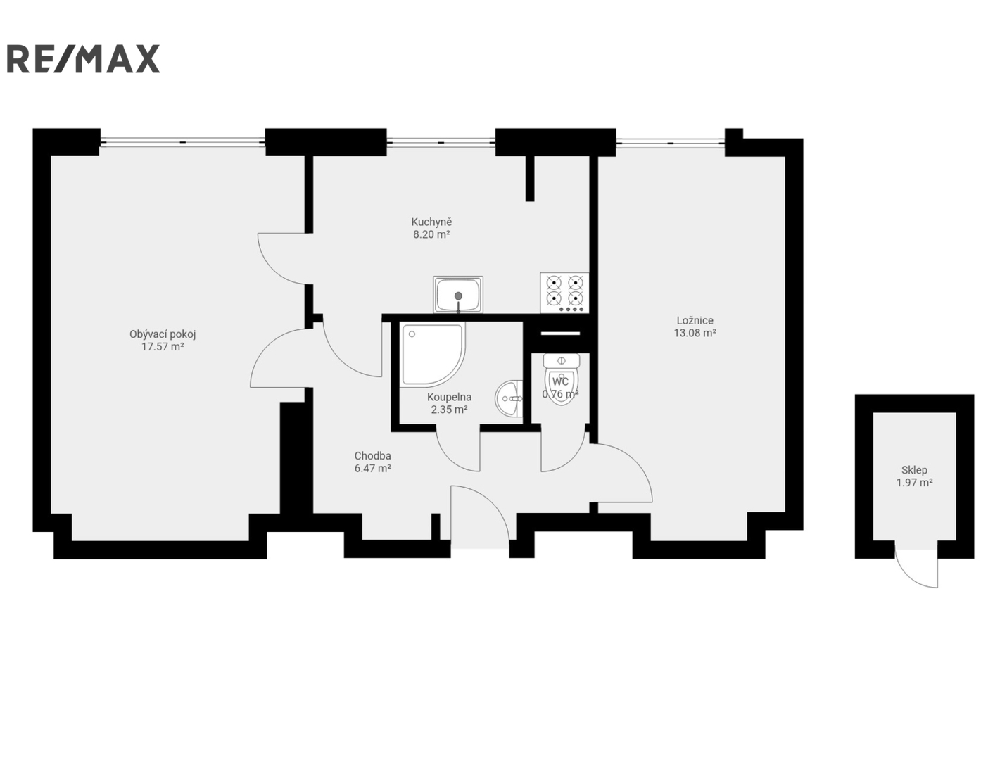 Byt se pronajímá bez vybavení, součástí zůstává pouze šatní skříň v ložnici.