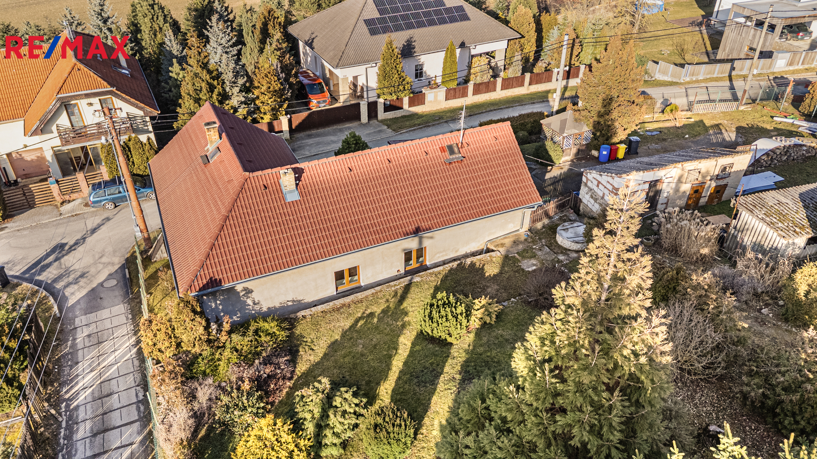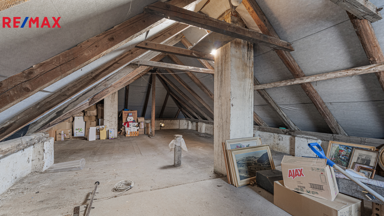 Střecha je v dobrém stavu a půda je pochozí, což nabízí další praktický prostor například pro skladování. Dům má plastová okna.