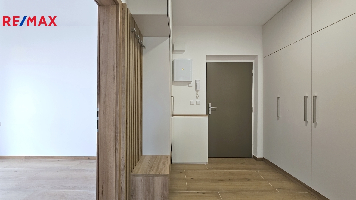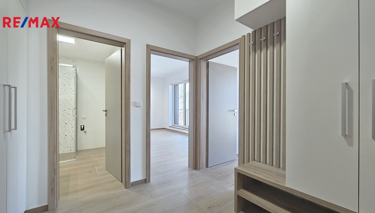 Byt o dispozici 2+kk je vybaven příjemným balkonem s výhledem do zeleně, venkovními žaluziemi, moderní kuchyní se spotřebiči a velmi praktickým úložným prostorem v předsíni. Byt je orientován na SZ. K dispozici je také parkovací stání.