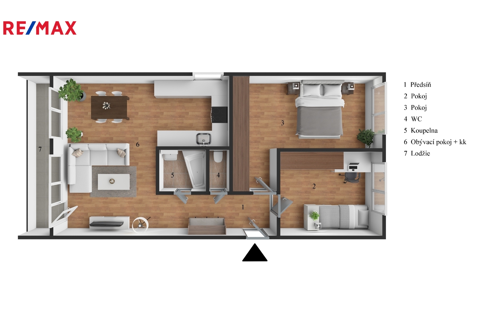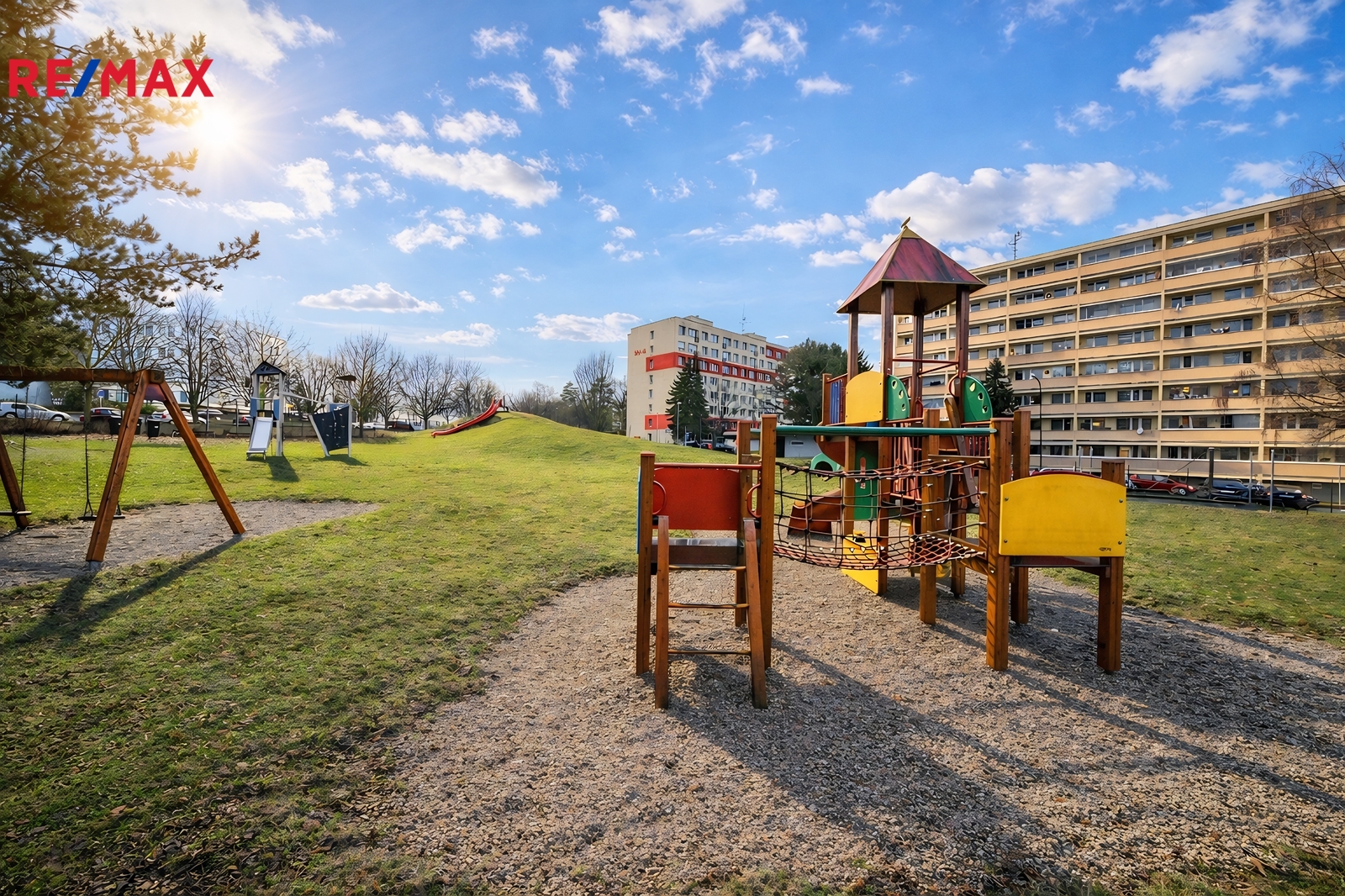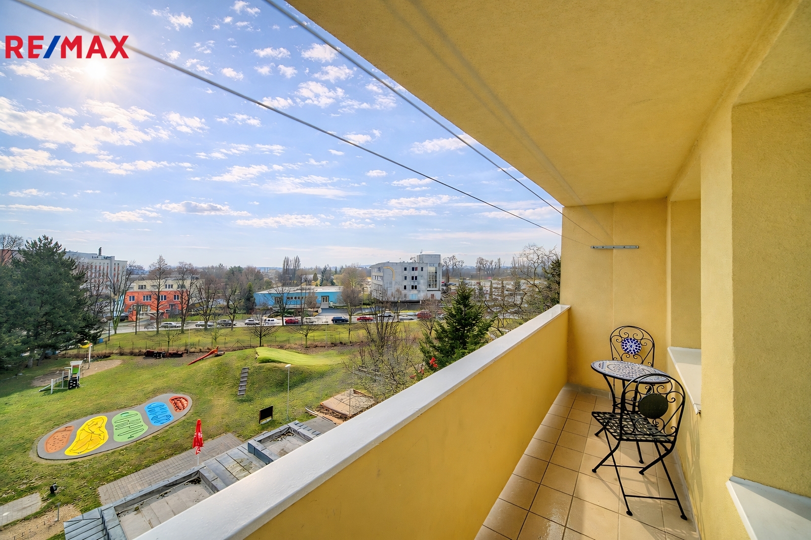 Velkým benefitem je prostorná lodžie s posezením a příjemným výhledem na dětské hřiště. K bytu náleží také sklepní kóje. V domě je k dispozici společná kolárna a sušárna.