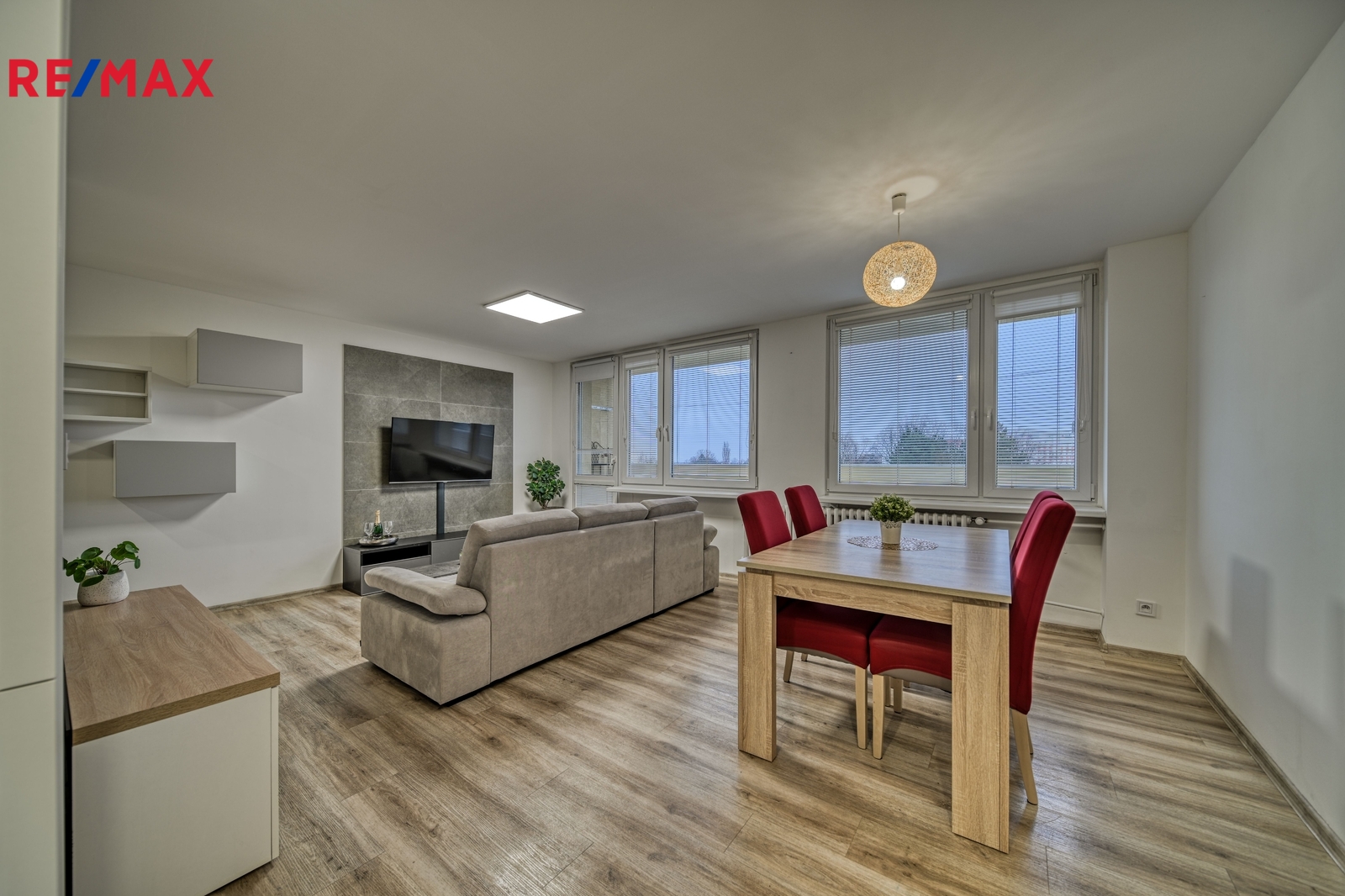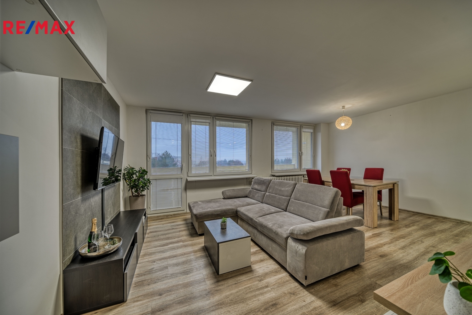 Nabízíme k pronájmu světlý a kompletně vybavený byt 3+kk o celkové ploše 67,7 m² s balkonem 6,3 m², který se nachází v 6. nadzemním podlaží bytového domu s výtahem.