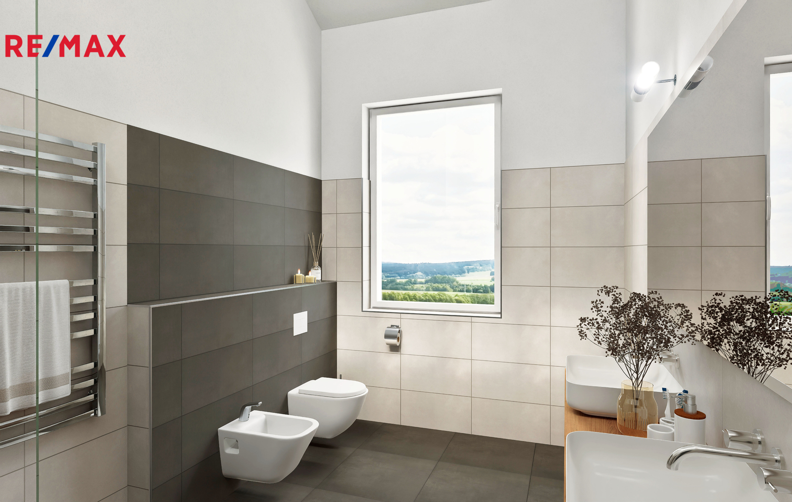 - walk-in sprcha, keramické obklady, kvalitní sanitární vybavení