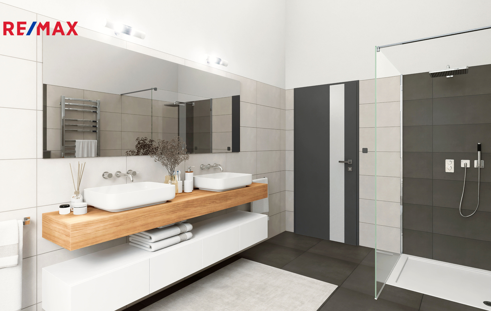 - walk-in sprcha, keramické obklady, kvalitní sanitární vybavení