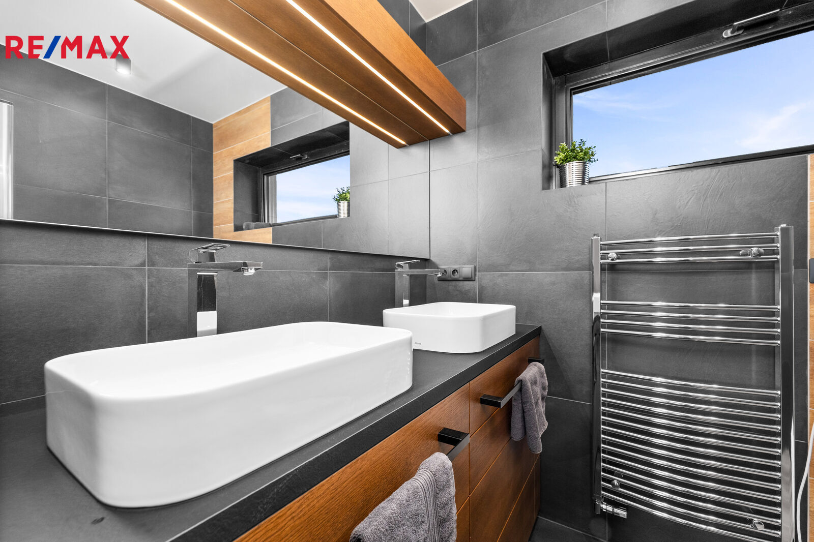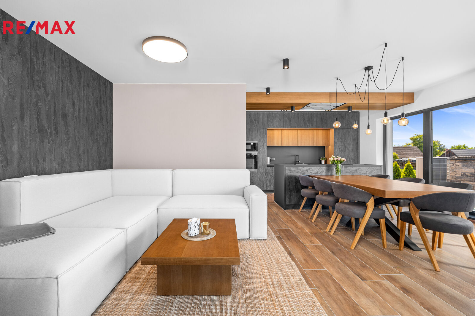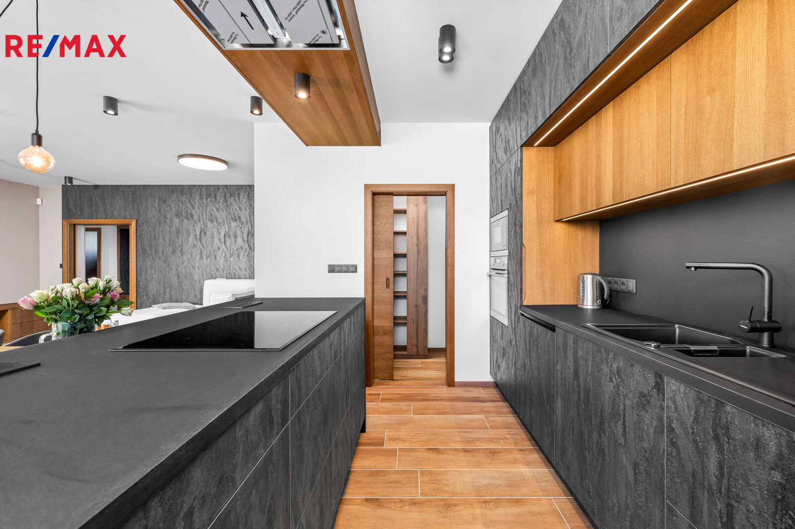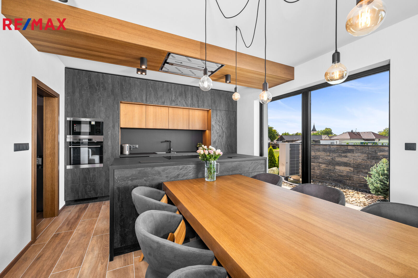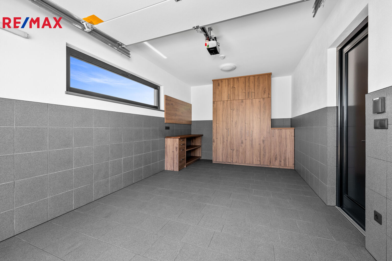 Nemovitost se prodává včetně nadstandardního, velice kvalitního vybavení: kuchyňská linka se spotřebiči, na míru zhotovený dřevěný nábytek (vestavné šatní skříně v chodbě, úložný systém ve spíži a šatně, koupelnový nábytek, předsíňová stěna, patrová postel vč. stolu a skříně v pokoji, skříně v garáži aj.). V domě zůstane i další vybavení, které je vidět na fotografiích včetně osvětlení.