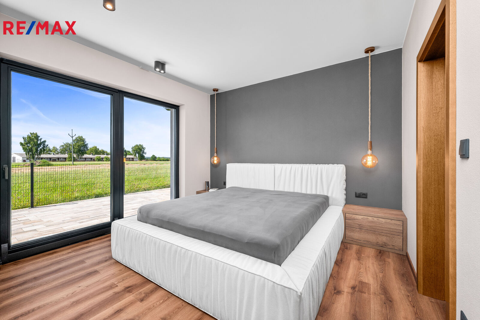 Nabízíme k prodeji nadstandardně provedenou, zatím neobývanou novostavbu přízemního rodinného domu v obci Mladošovice, vzdálené 9 km od Třeboně a 6,5 km z Borovan.