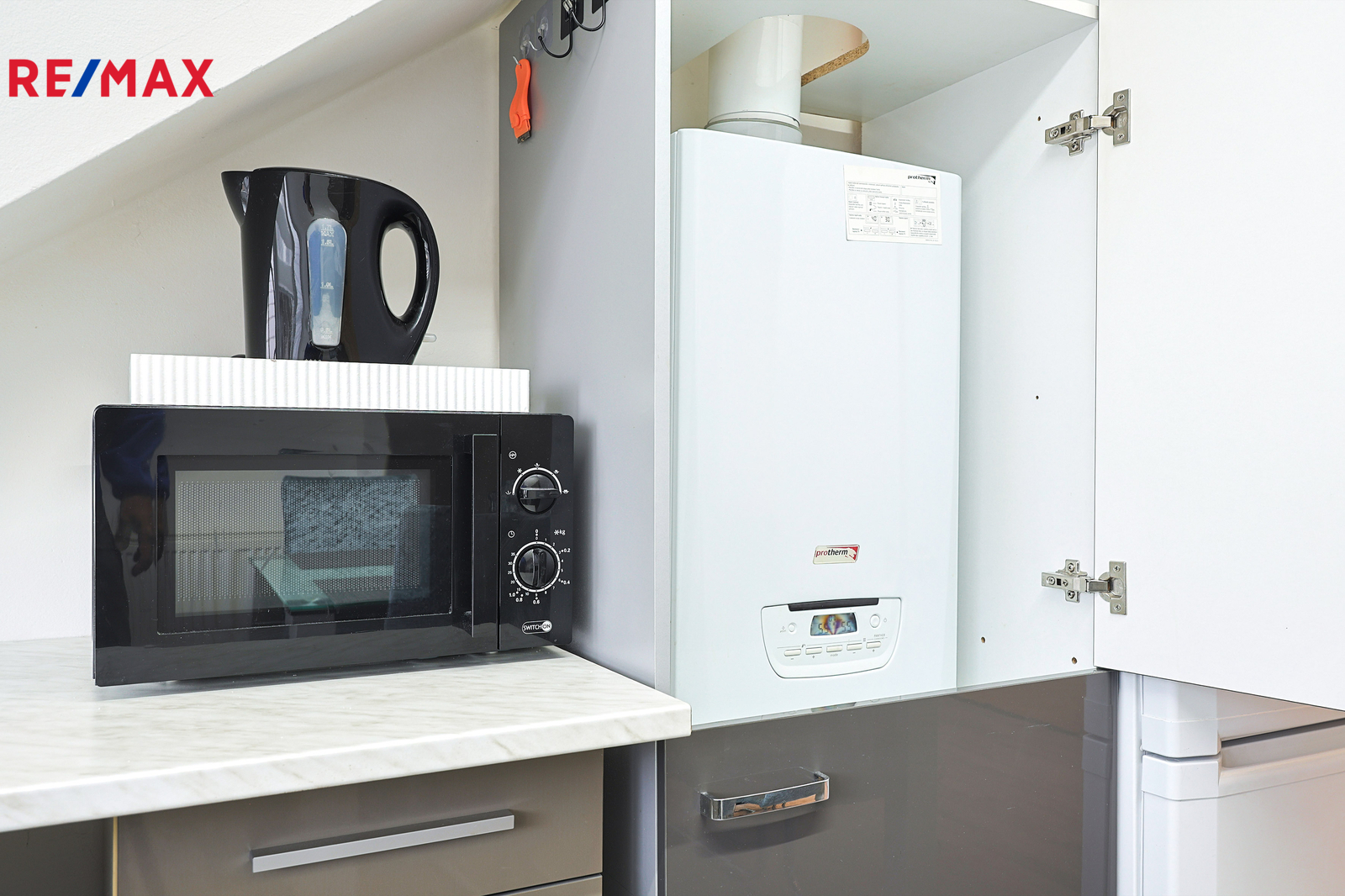 Ohřev vody a vytápění zajišťuje kombinovaný kotel.