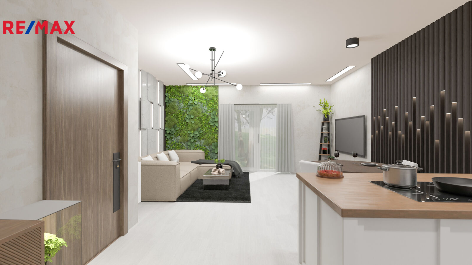 Novostavba o dispozici 3+kk nabízí téměř 100 m² užitné plochy a vlastní pozemek o velikosti přes 100 m². Dům je navržen s důrazem na funkčnost, komfort a současný moderní styl. V přízemí se nachází vstupní chodba s místem pro vestavěné skříně, samostatná toaleta a praktická komora pod schody, kterou lze využít jako spíž či úklidový prostor. Dominantou je světlý obývací pokoj s kuchyňským koutem a velkým francouzským oknem, které plynule propojuje interiér s terasou o velikosti přibližně 12 m² a navazující zahradou – ideálním místem pro letní posezení, grilování i rodinné chvíle.