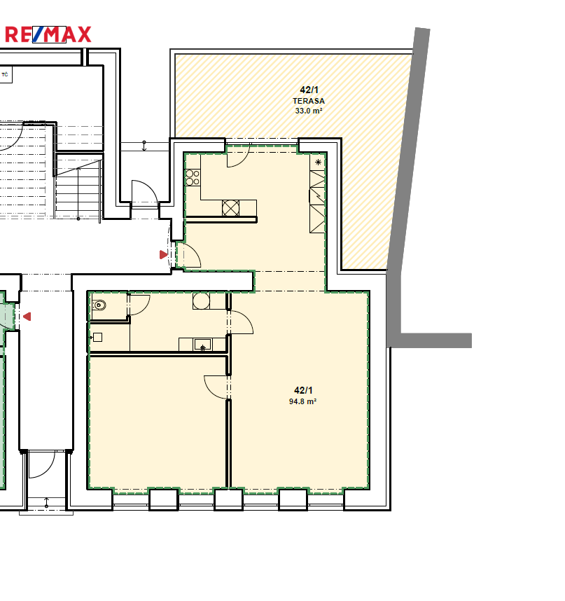 Dominantou bytu je velkorysá terasa o ploše 33 m², ideální pro posezení, grilování i každodenní relax. K bytovému domu náleží také společná zahrada, kterou mohou obyvatelé využívat k odpočinku, dětským hrám nebo setkávání s přáteli.