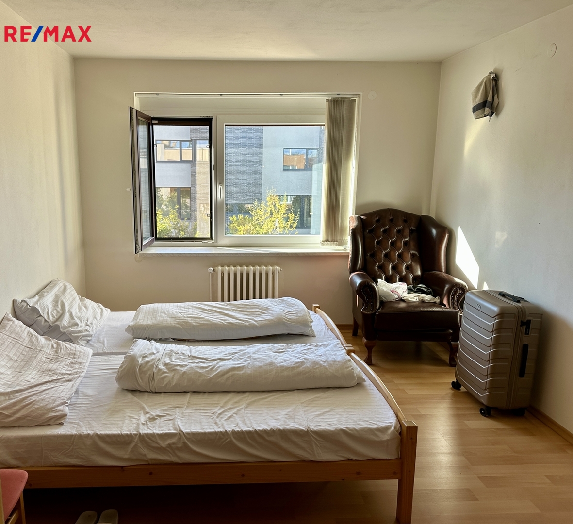 Výborná dopravní dostupnost – stanice metra je 1 km od domu a autobusová zastávka 350 m.