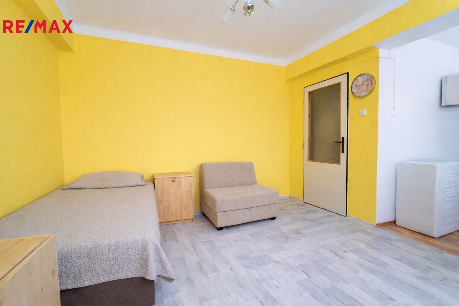Bytová jednotka 1+1, po rekonstrukci (elektřina, odpady, sociální zařízení), se nachází ve zvýšeném přízemí z 12 pater. Dispoziční řešení: kuchyň, místnost, chodbička s úložným prostorem a koupelna s toaletou. Součástí tržní ceny je kuchyňská linka včetně spotřebičů a vybavení v koupelně s toaletou. Po ploše bytu bylo položeno PVC a dlažba.