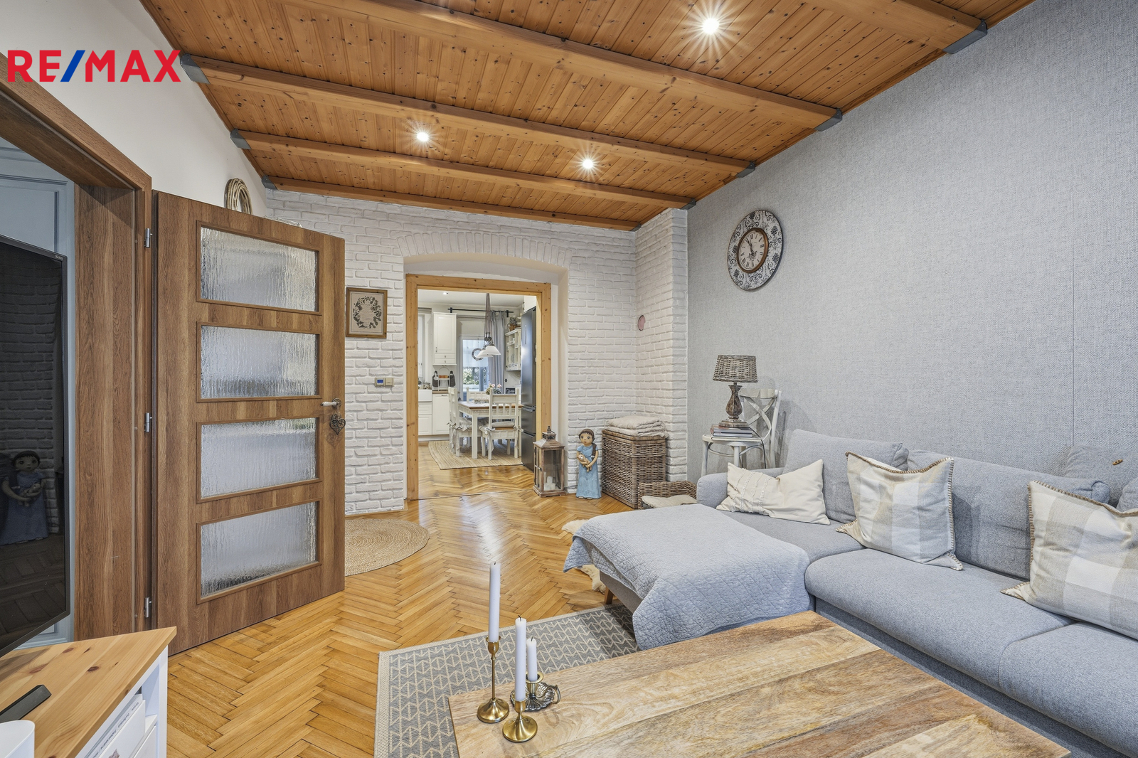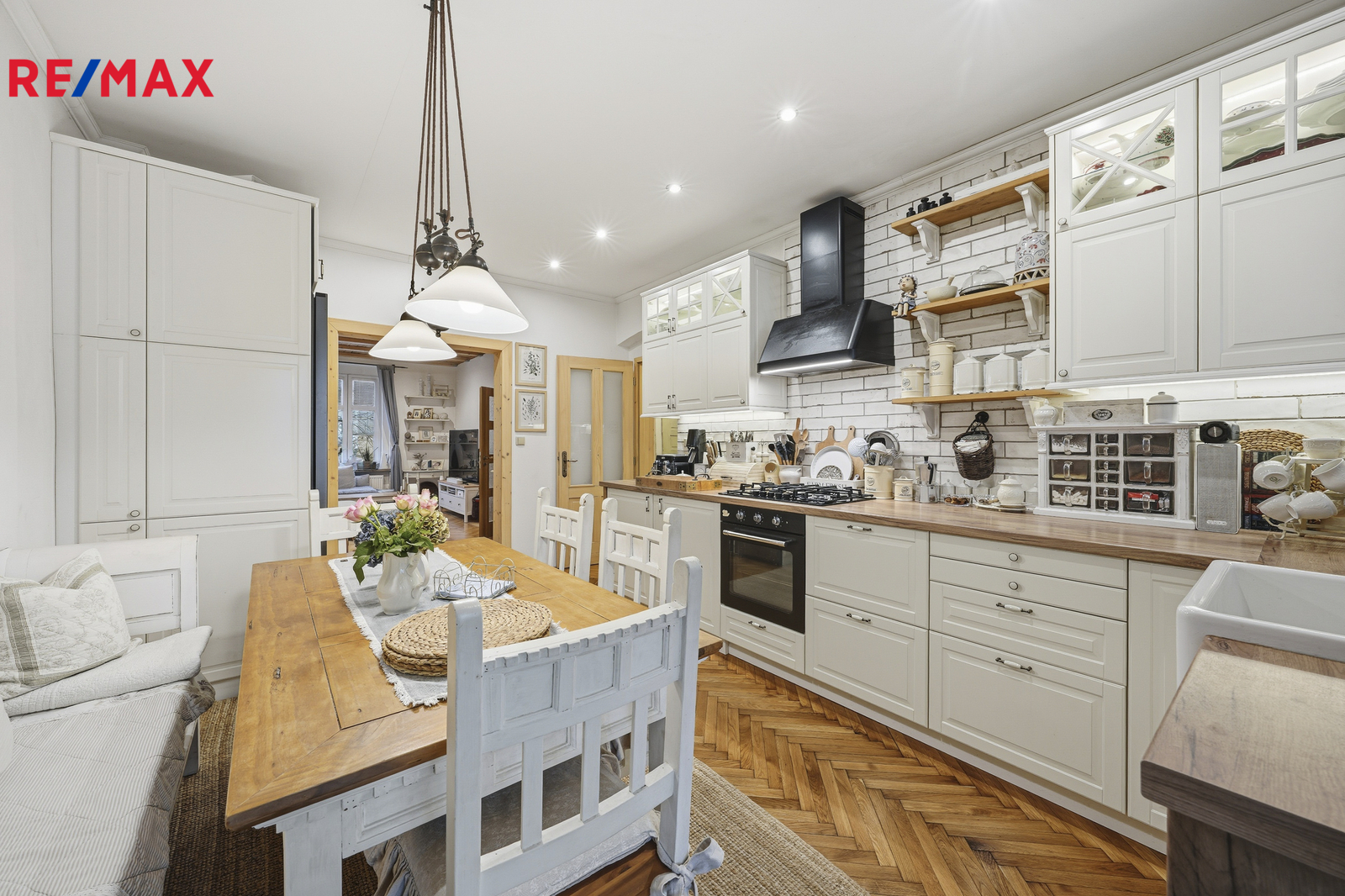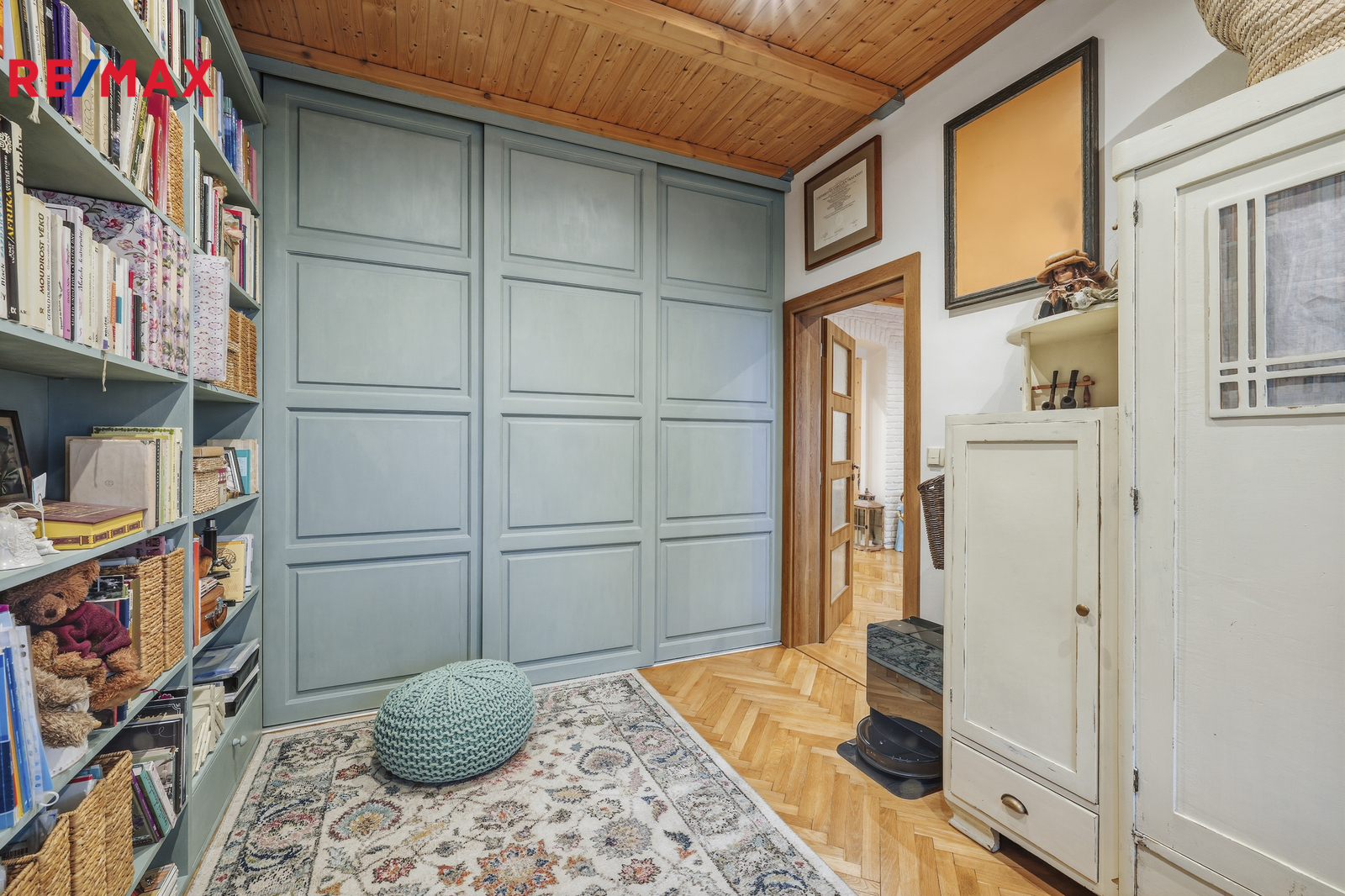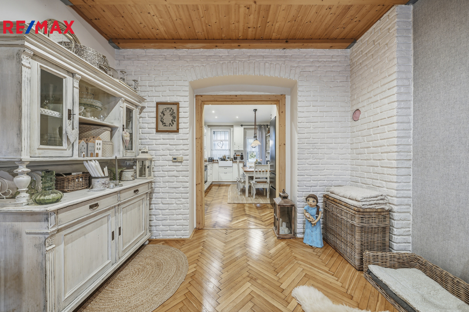Byt o celkové výměře 107 m² se nachází v 1.patře čtyřpatrového cihlového domu, prošel náročnou a precizní rekonstrukcí, která kladla důraz na přírodní materiály. Interiér nabízí teplou atmosféru broušených parket a výrazný charakter přiznaných dřevěných stropů. V bytě jsou nové rozvody vody, elektřiny i topení v mědi. Plynový kondenzační kotel pro vytápění i ohřev vody a nově vyvložkovaný komín jsou zárukou, že se stěhujete do bytu bez nutnosti dalších investic. Okna jsou plastová, koupelna zděná se sprchovým koutem obložená keramickými obklady.
