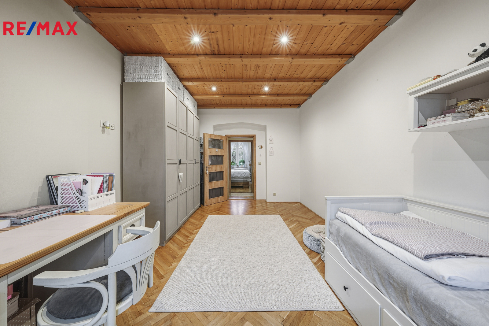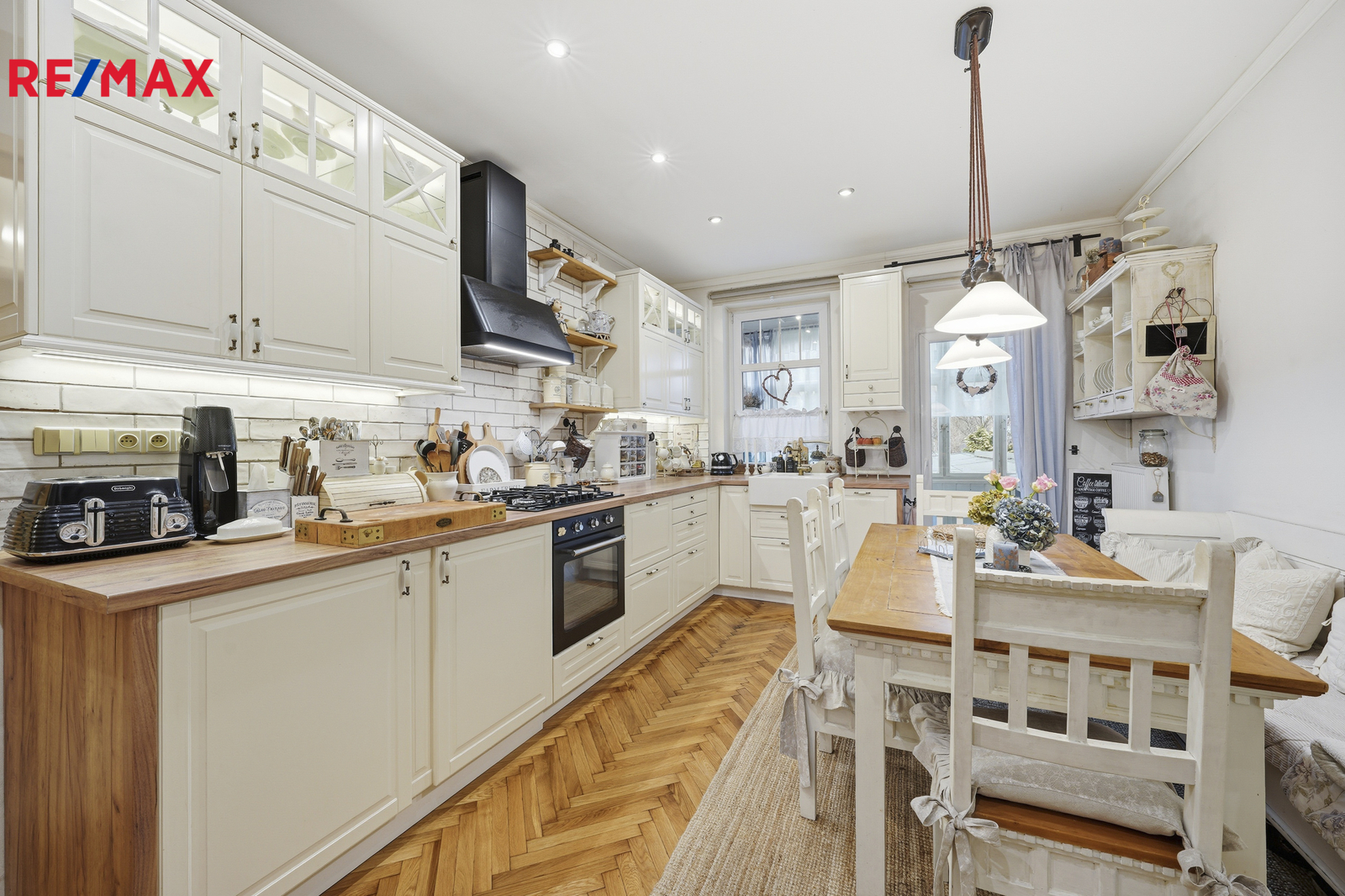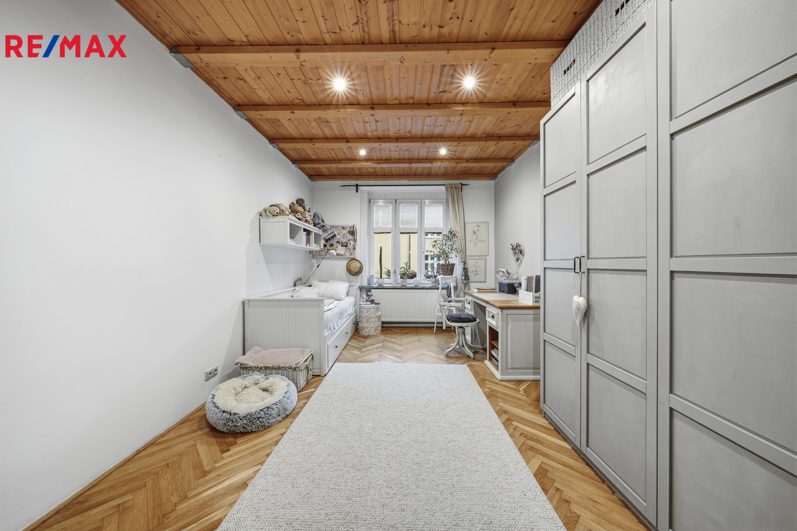 Byt o celkové výměře 107 m² se nachází v 1.patře čtyřpatrového cihlového domu, prošel náročnou a precizní rekonstrukcí, která kladla důraz na přírodní materiály. Interiér nabízí teplou atmosféru broušených parket a výrazný charakter přiznaných dřevěných stropů. V bytě jsou nové rozvody vody, elektřiny i topení v mědi. Plynový kondenzační kotel pro vytápění i ohřev vody a nově vyvložkovaný komín jsou zárukou, že se stěhujete do bytu bez nutnosti dalších investic. Okna jsou plastová, koupelna zděná se sprchovým koutem obložená keramickými obklady.