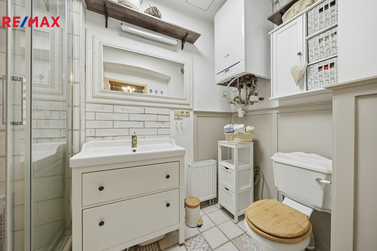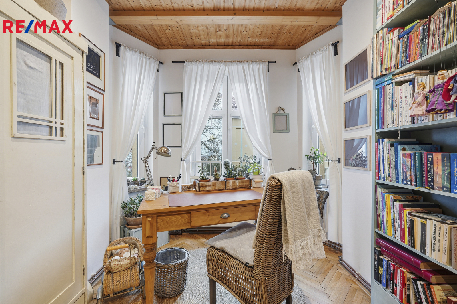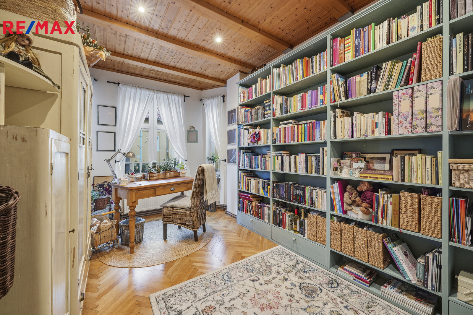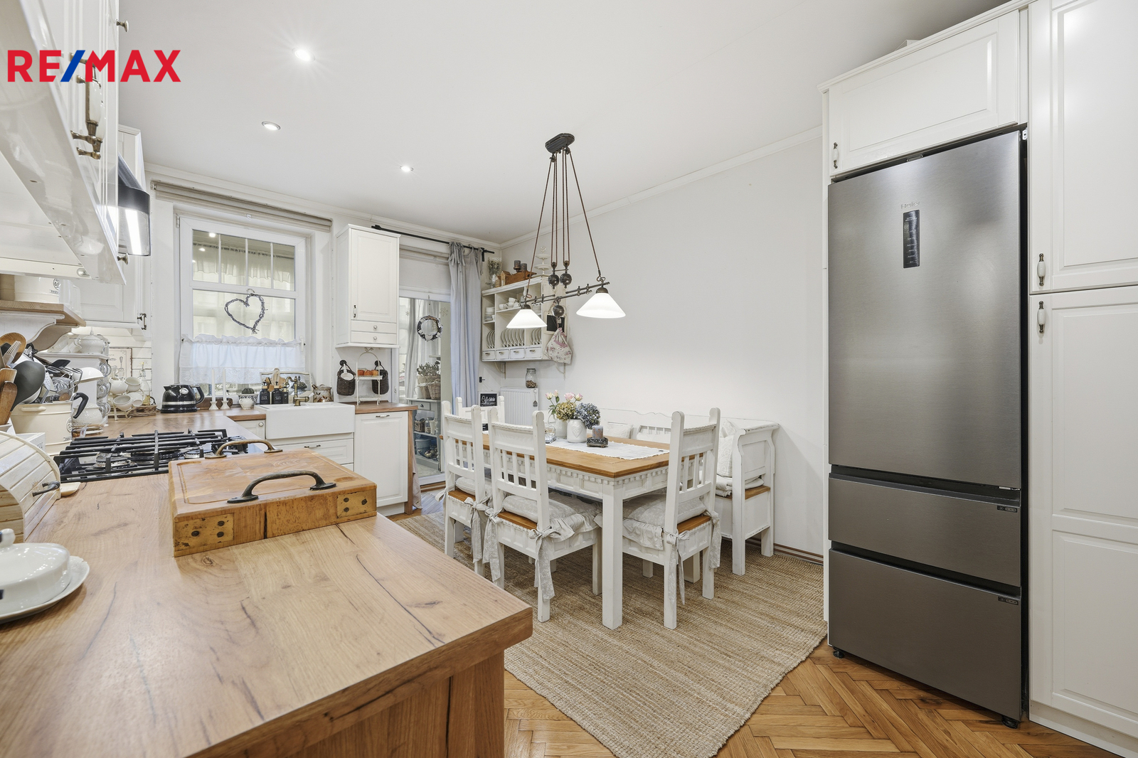 Byt o celkové výměře 107 m² se nachází v 1.patře čtyřpatrového cihlového domu, prošel náročnou a precizní rekonstrukcí, která kladla důraz na přírodní materiály. Interiér nabízí teplou atmosféru broušených parket a výrazný charakter přiznaných dřevěných stropů. V bytě jsou nové rozvody vody, elektřiny i topení v mědi. Plynový kondenzační kotel pro vytápění i ohřev vody a nově vyvložkovaný komín jsou zárukou, že se stěhujete do bytu bez nutnosti dalších investic. Okna jsou plastová, koupelna zděná se sprchovým koutem obložená keramickými obklady.
