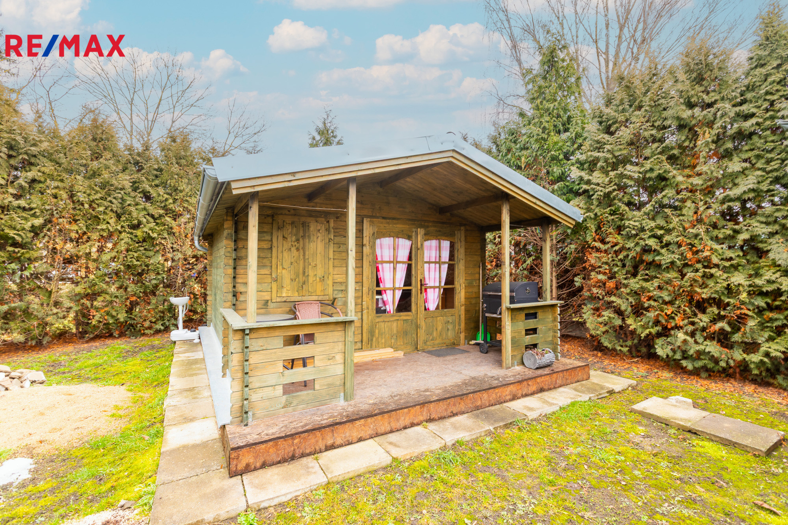 Na pozemku se nachází nová dřevěná chata z podzimu roku 2025, vyrobená truhlářem na míru. Může sloužit jako zázemí při budoucí výstavbě, víkendové útočiště nebo praktický skladovací prostor.