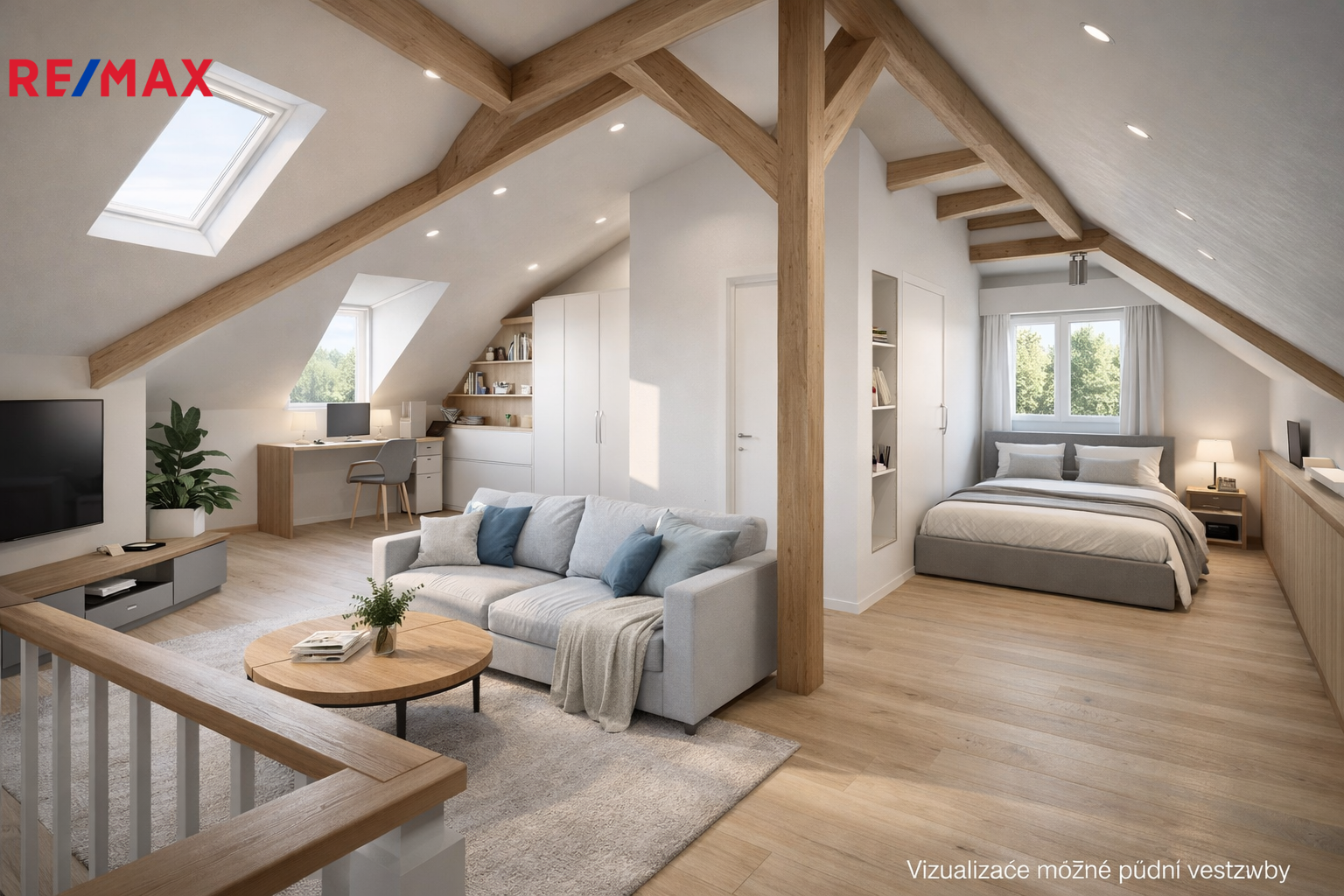 Dispozice v současnosti odpovídá 2+1, ale díky uspořádání nabízí možnost úpravy na moderní 2+kk nebo 3+kk. Velkou výhodou je prostorná půda, kde je již vybudována jedna obytná místnost a která umožňuje další rozšíření obytné plochy formou půdní vestavby.