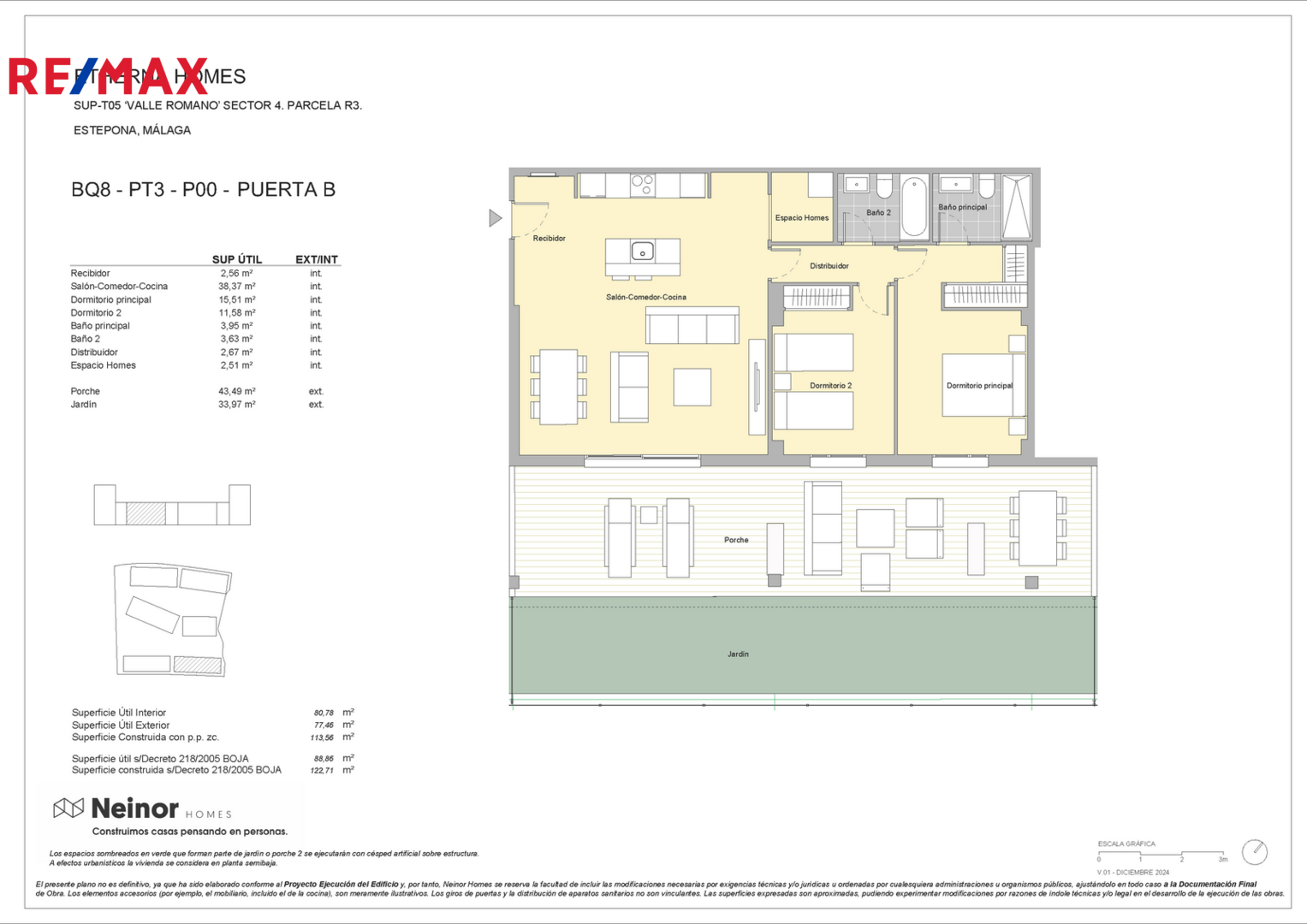 ✔ Apartmán: má rozlohu 80,78 m2 a přísluší k němu zastřešená veranda o velikosti 43,49 m2 a zahrada 33,97 m2