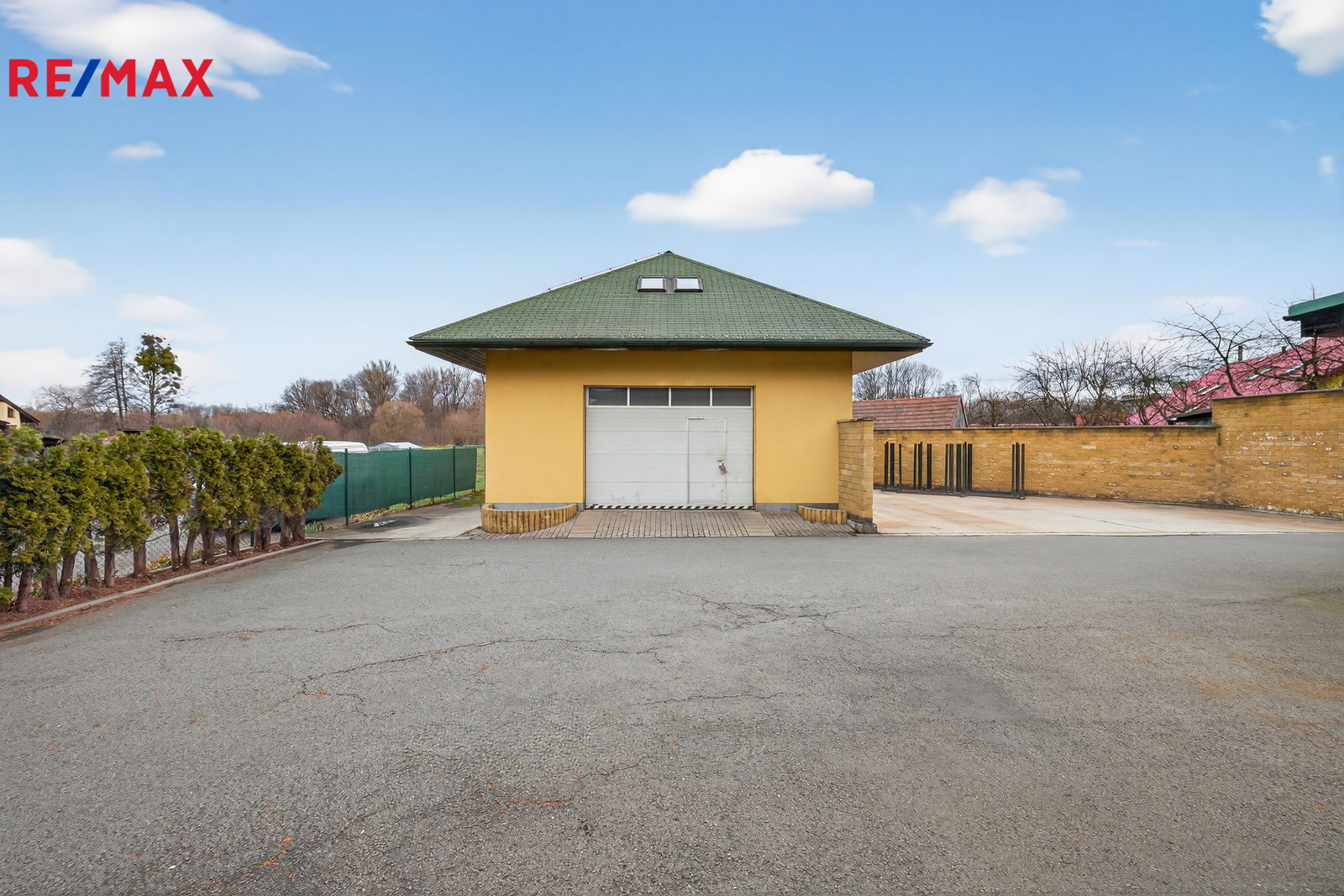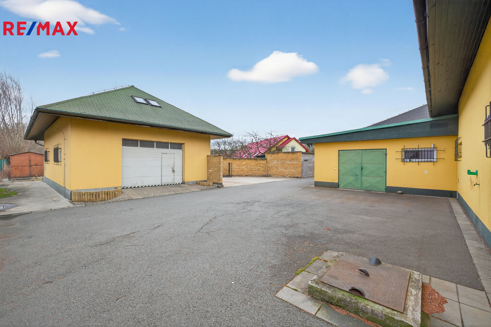 V areálu se dále nachází samostatná zděná budova skladu/garáže s využitým podkrovím, vhodná pro skladování, dílnu nebo lehkou výrobu. K dispozici jsou zpevněné plochy a parkování na vlastních pozemcích.