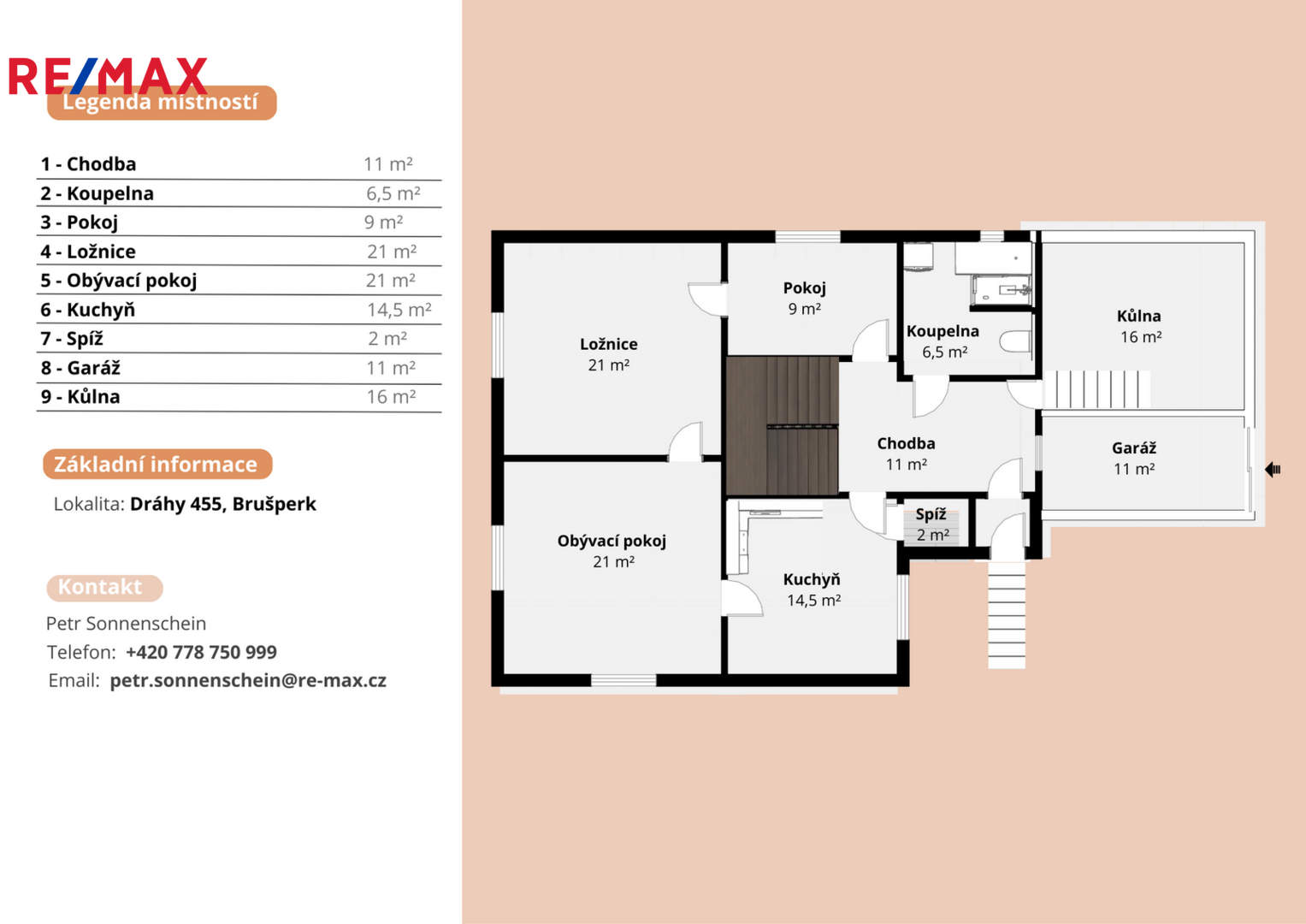 ● Počet podlaží: 2. nadzemní podlaží, 1. podzemní podlaží, garáž a kůlna