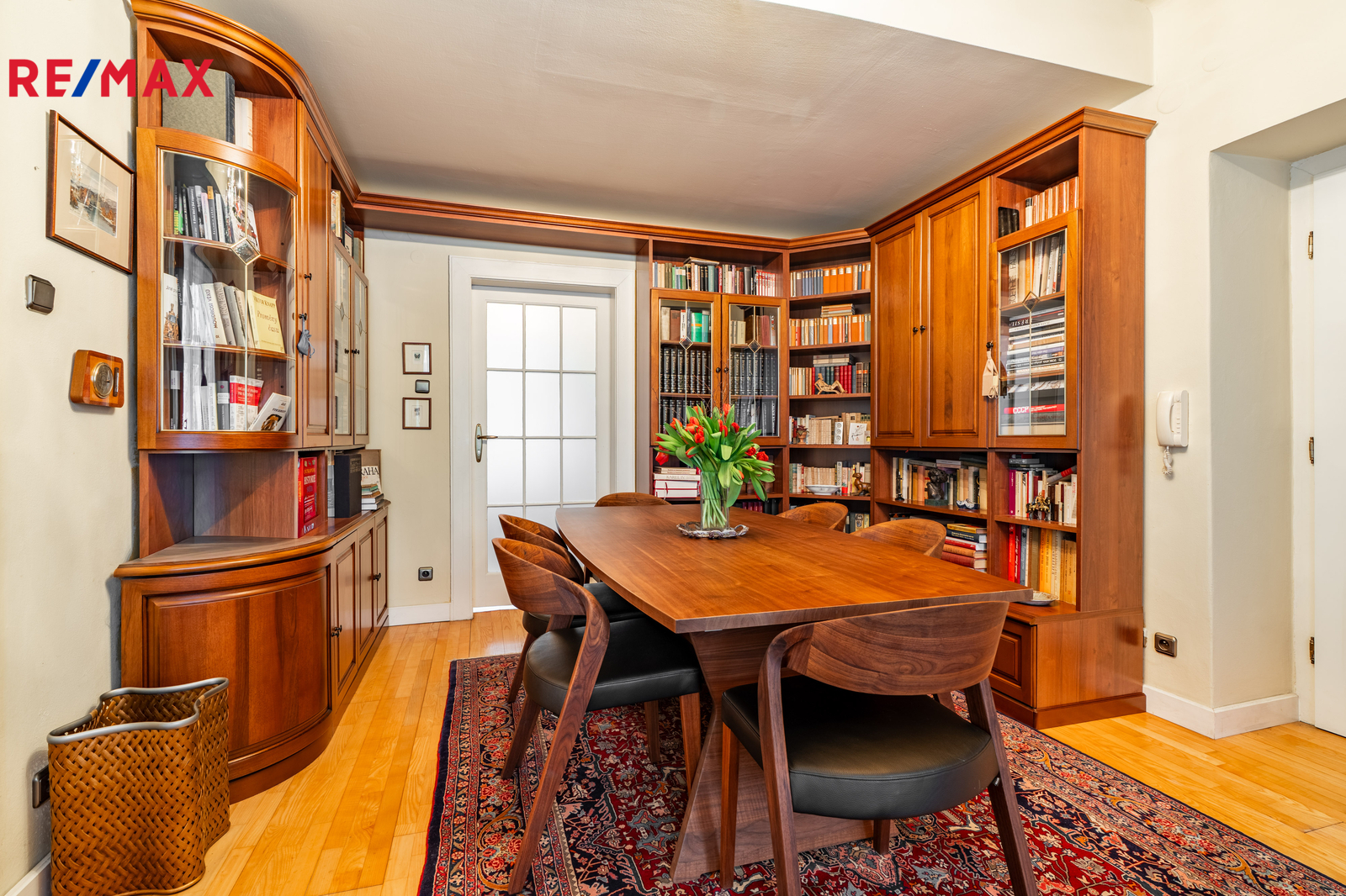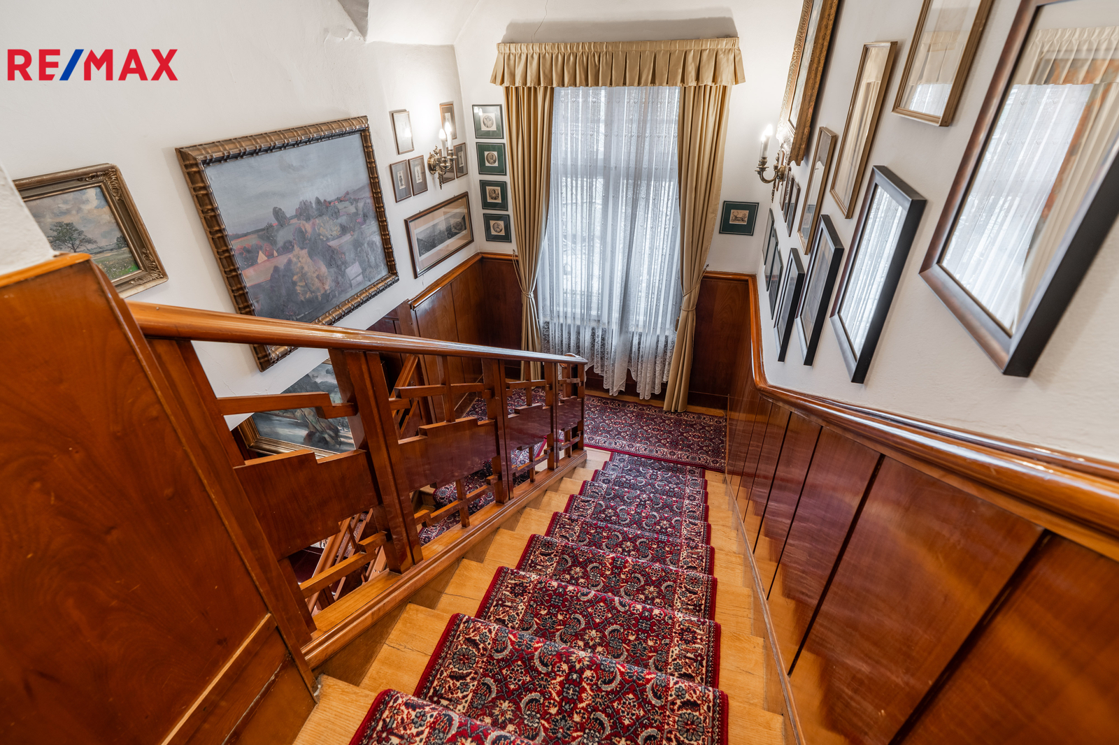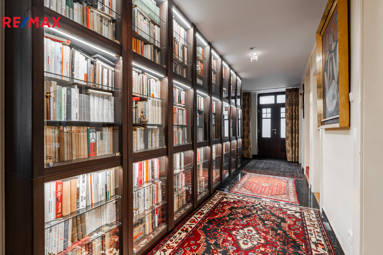 Designed by architect Jan Chládek, the villa breathes the atmosphere of the First Republic’s golden era. The warm tones of the façade, featuring distinctive bay windows, conceal an interior where history blends seamlessly with the absolute luxury of the period. Every detail has been designed with an emphasis on premium materials: the staircase, paneling, and unique Gentlemen’s Study are masterfully crafted from ash wood, while the bathrooms feature massive Swedish granite floors. High coffered ceilings complete the majestic atmosphere. The house offers generous space for multi-generational living or the option to separate a representative company headquarters.