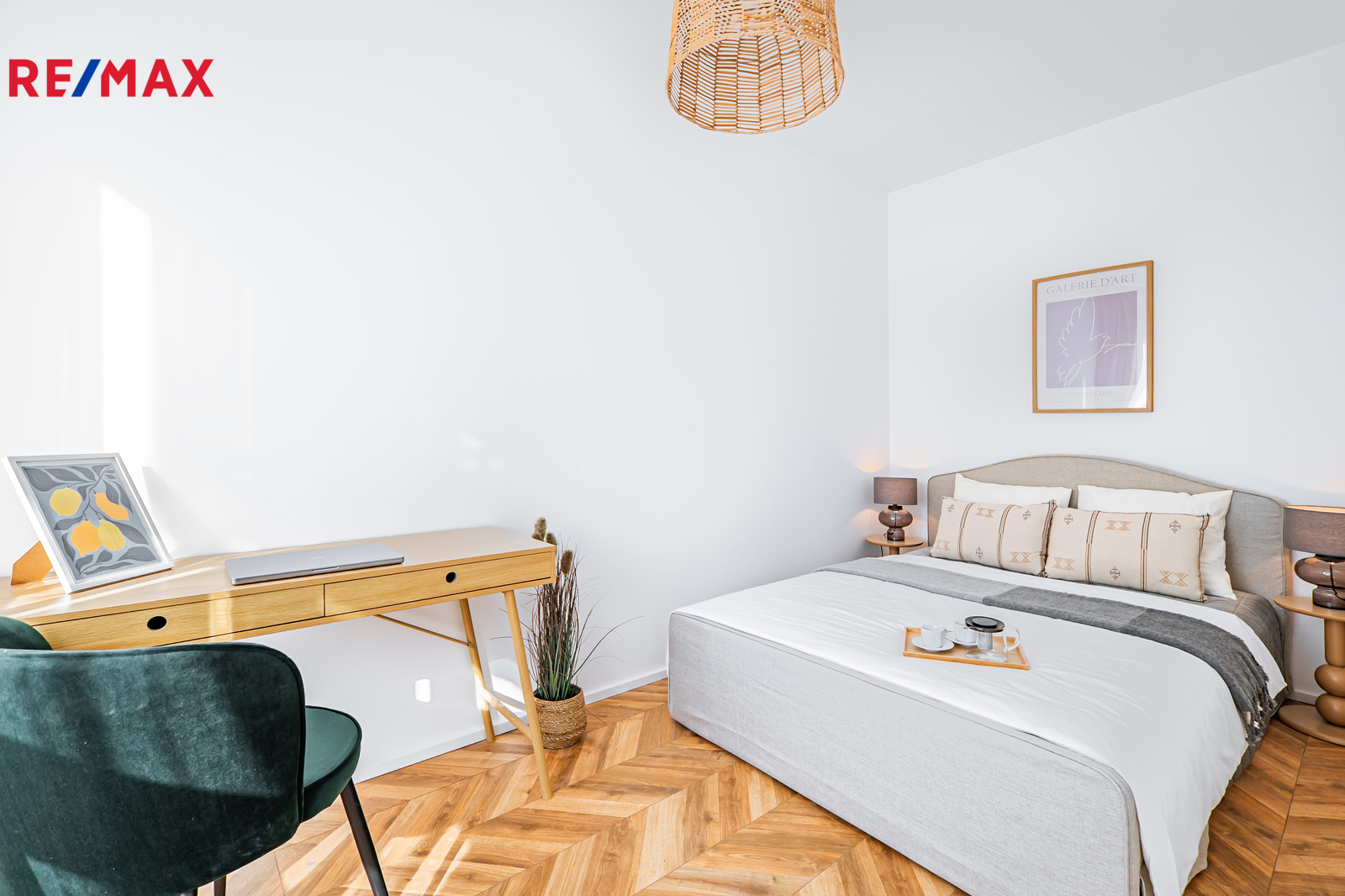Součástí bytu je plně vybavená kuchyňská linka se spotřebiči, kvalitní okna s trojskly a příprava na venkovní žaluzie. V předsíni je dostatek prostoru pro vestavěný nábytek, což umožňuje praktické řešení úložných prostor. Velkým benefitem je prostorný balkon, který nabízí příjemné místo k odpočinku.