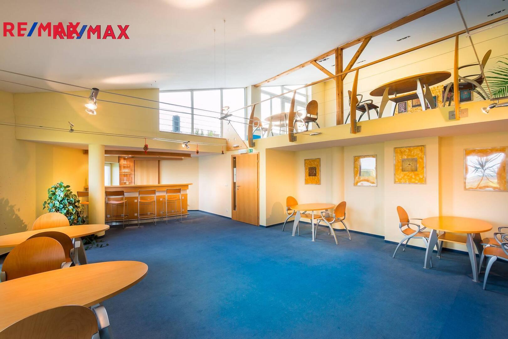 - moderní třípodlážní administartivní budovy (1245 m2) s recepcí, školící místností, kuchyňkami v každém podlaží, dvěma hotelovými pokoji, terasami s výhledem na Prahu a široké panorama okolní krajiny.