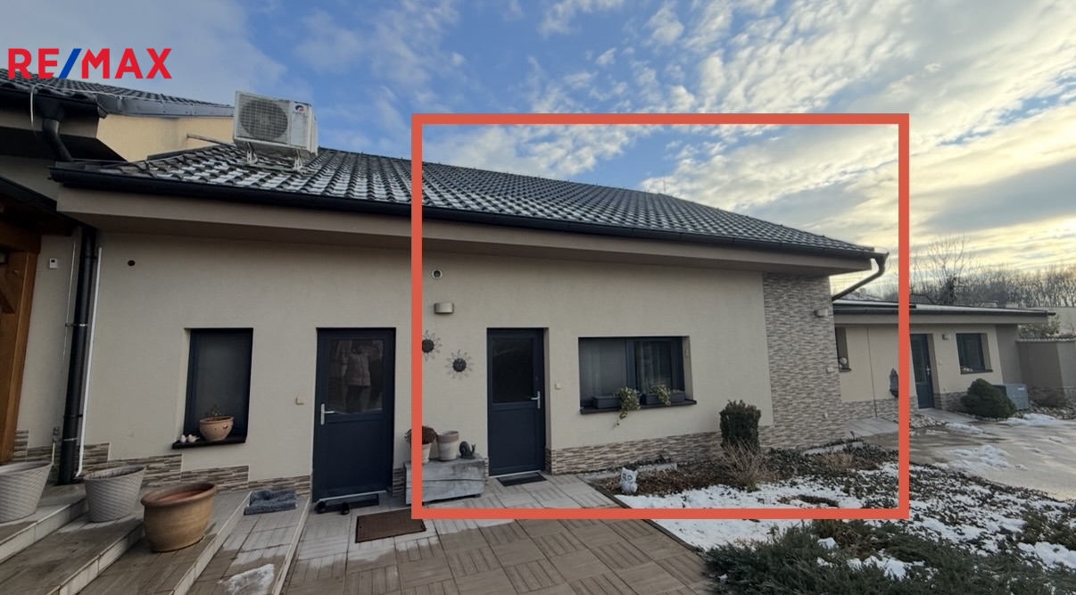 Byt se nachází v cihlovém rodinném domě v přízemí se samostatným vstupem. Jednopodlažní dispozice zajišťuje bezbariérový přístup. Vstup do bytu je řešen přes garáž, jedná se o samostatnou jednotku v domě.