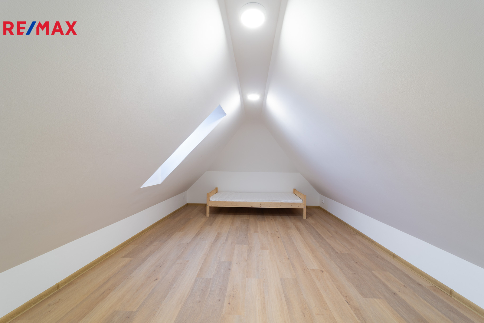 Do 3. NP vede menší kruhové schodiště, které ústí do otevřeného prostoru určeného pro spaní o výměře 32,65 m². Tento prostor zatím není vytápěn a hned vedle něj se nachází další půdní část o výměře 21,48 m², kterou lze využít například jako sklad nebo další zázemí. Celek působí vzdušně a nabízí překvapivě variabilní využití podle potřeb nového majitele.