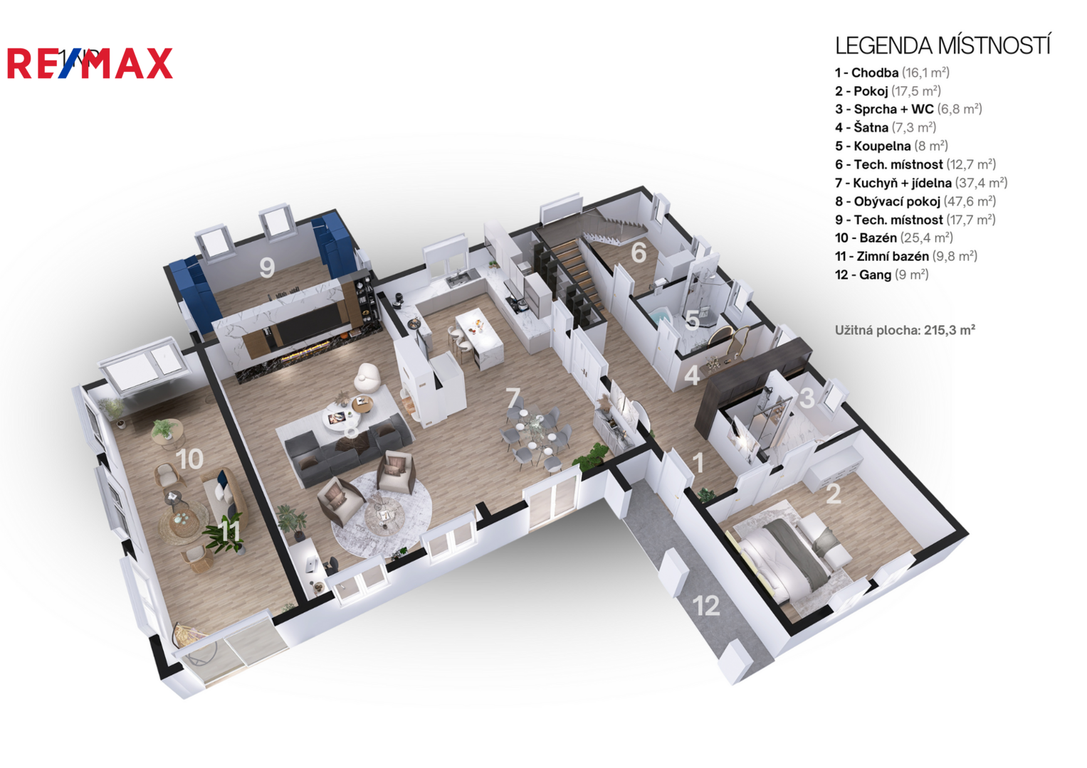 Zastavěná plocha cca 270 m² a podlahová plocha přes 230 m² nabízí dostatek prostoru i pro náročnou rodinu.