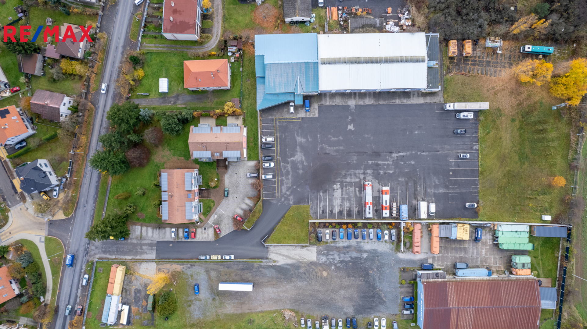Parkovací stání: 13 míst pro osobní vozy, 11 míst pro kamiony.