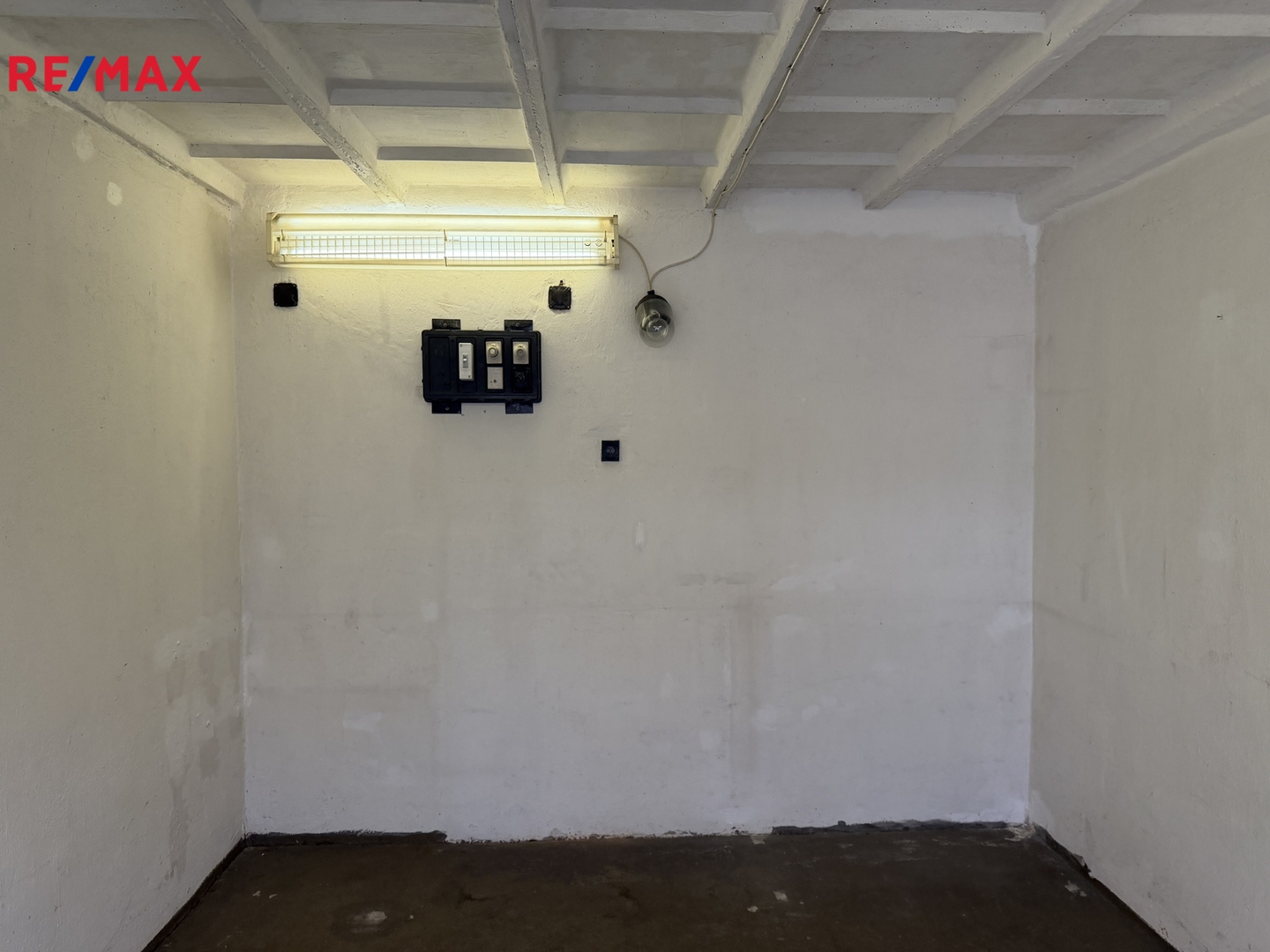 Do garáže je zavedena elektřina 230 V s vlastním rozvodem, k dispozici je vnitřní osvětlení i zásuvka, což výrazně rozšiřuje možnosti využití – nejen pro parkování osobního automobilu či motocyklu, ale také jako skladovací prostor nebo menší dílnu. Vnitřní prostor umožňuje pohodlné parkování běžného osobního vozu včetně manipulační rezervy.