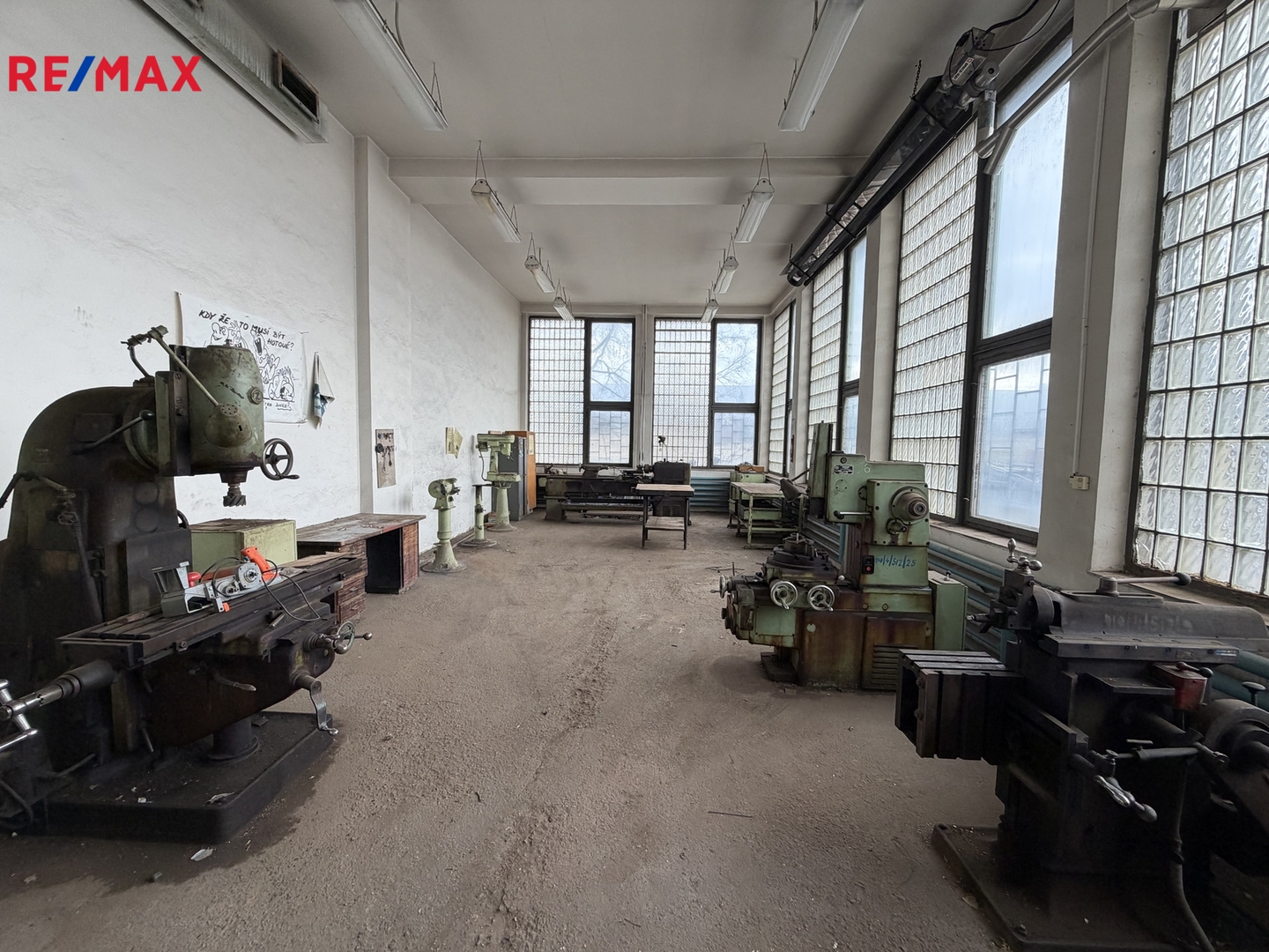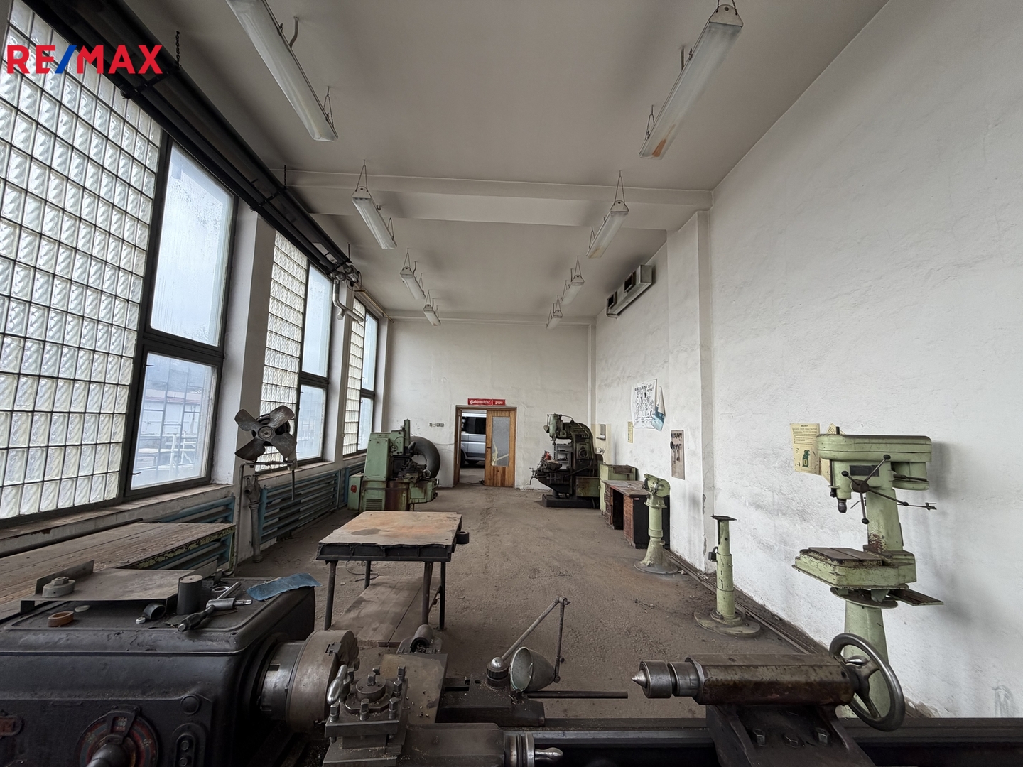 - Hlavní dílna: 221 m² (17,7m x 12,5m)
