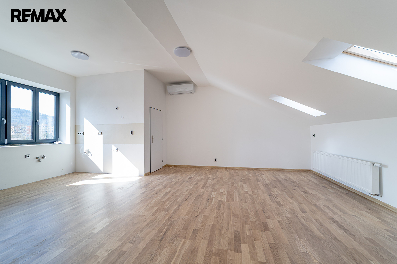 Byt nabízí dostatek prostoru, soukromí a příjemnou atmosféru nejvyššího podlaží.