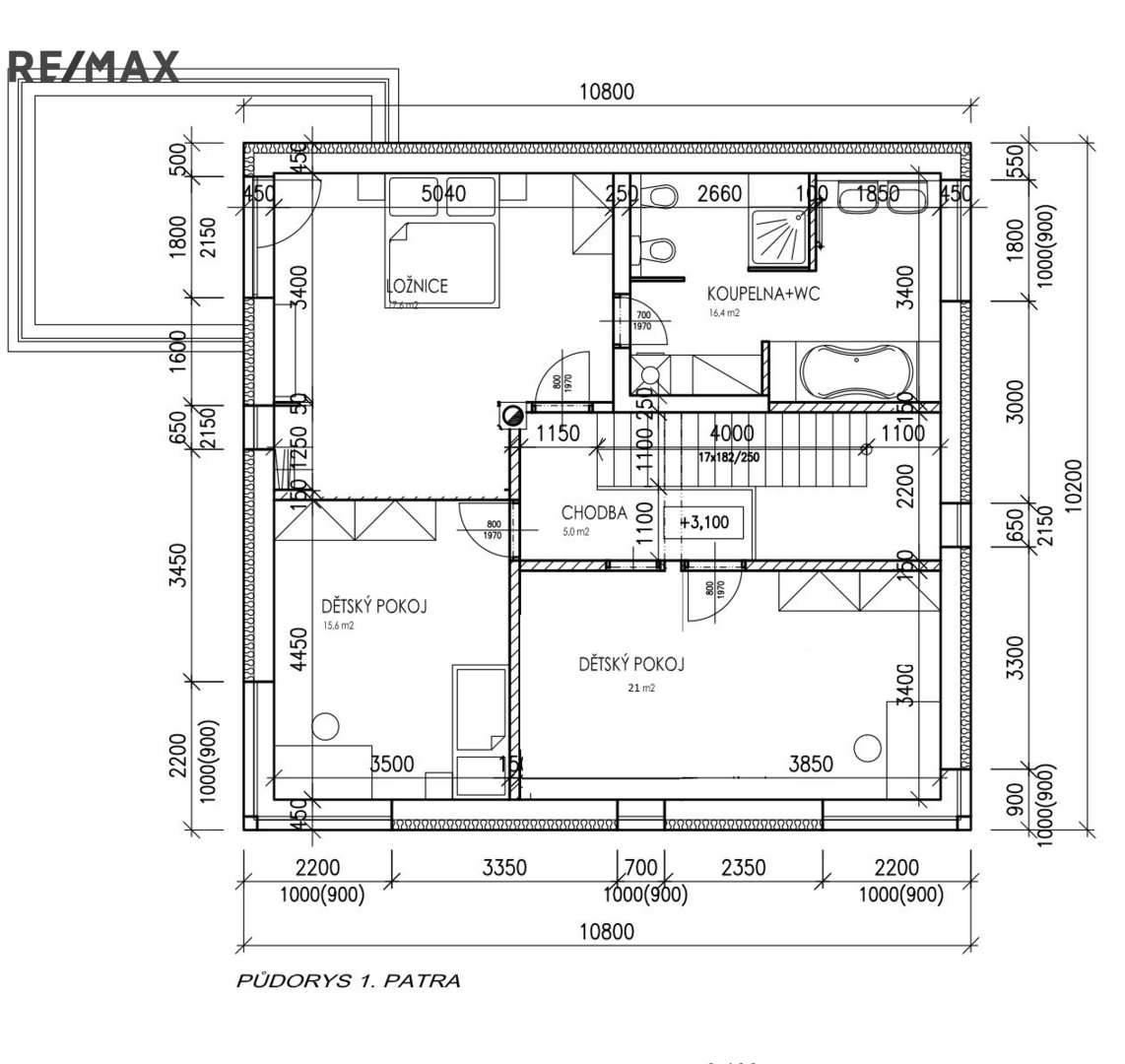 V patře se nachází tři samostatné pokoje, přičemž jeden z nich je koncipován jako větší hlavní ložnice se vstupem do koupelny, což dodává bydlení příjemný nadstandard a více soukromí. Dvě další místnosti jsou ideální jako dětské pokoje, pokoj pro hosty nebo pracovna. V patře je také druhá, velmi prostorná koupelna, která disponuje sprchovým koutem, vanou i toaletou – ideální pro vícečlennou domácnost nebo situace, kdy se ráno všichni chystají současně.