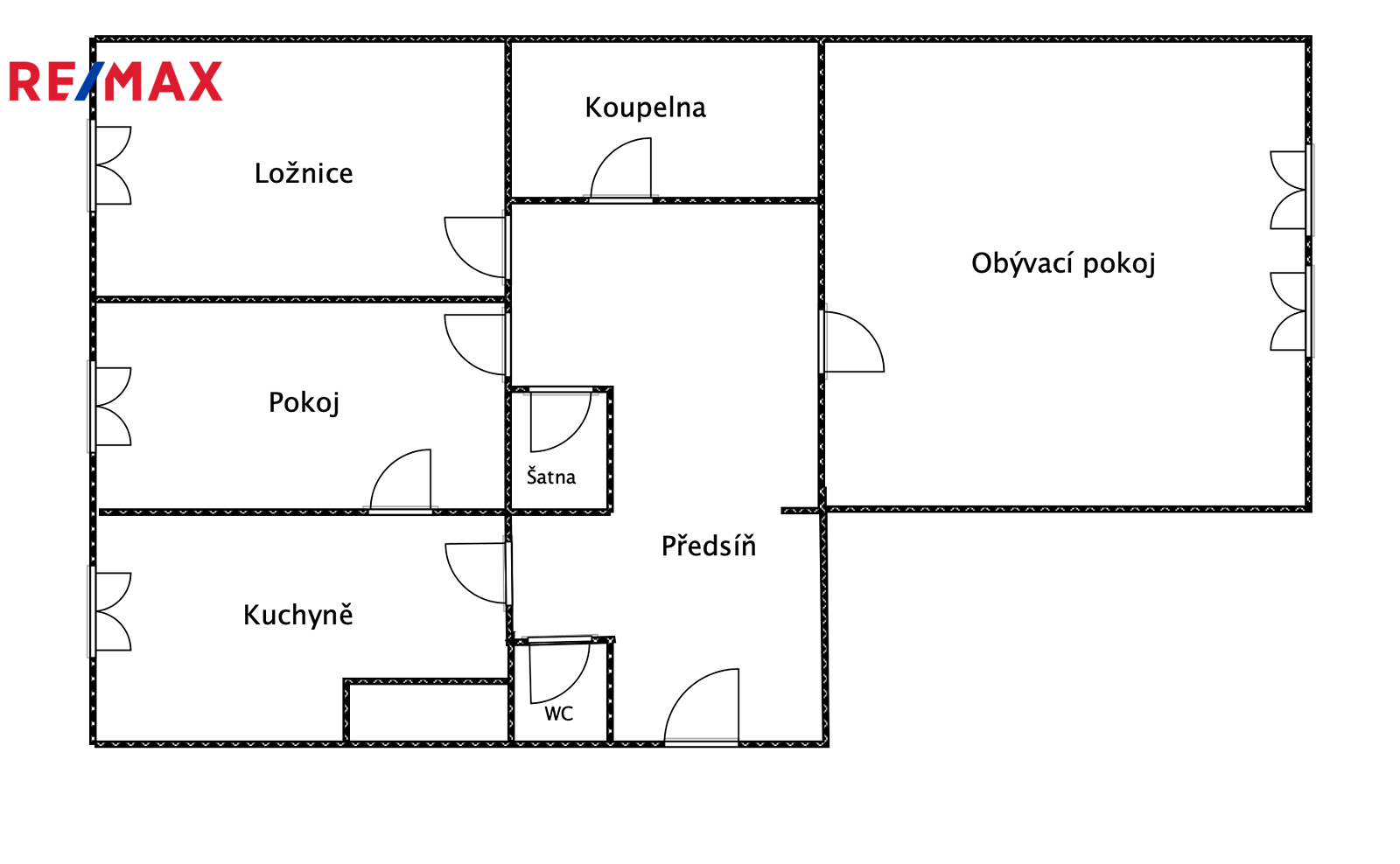 Pokoje jsou neprůchozí, ložnice má 10,80 m2, obývací pokoj 20,40 m2 a pokoj, který nyní sloužil jako jídelna a pracovna 8,60 m2. Koupelna s vanou, WC zvlášť, šatna.
