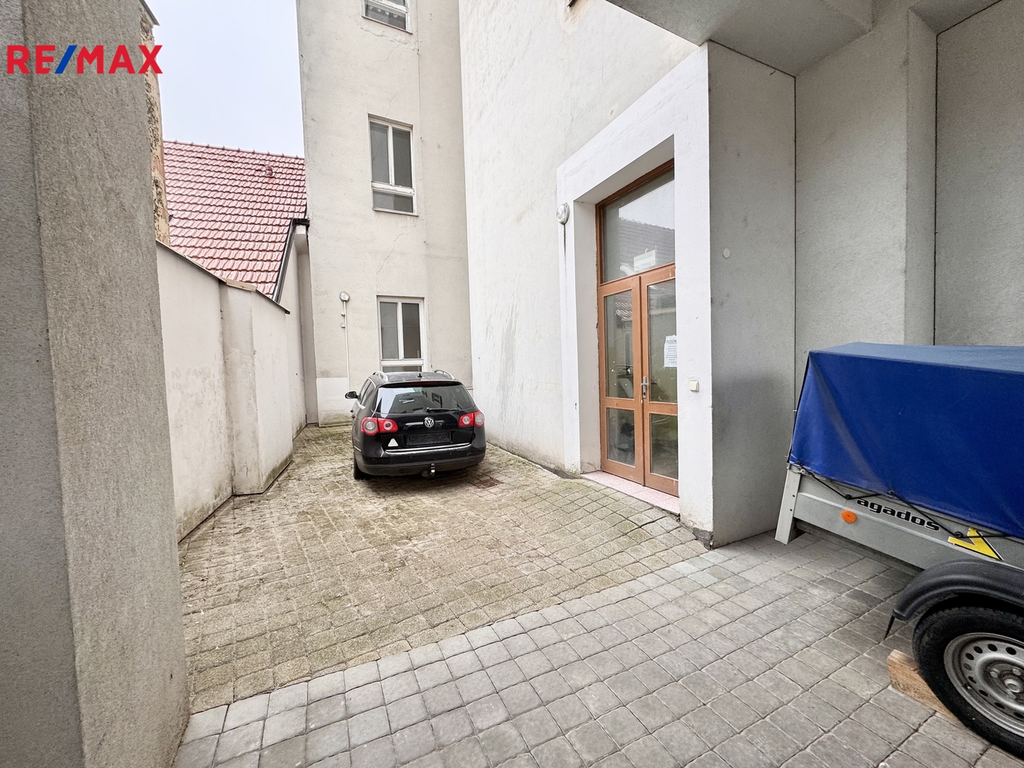 Nemovitost má dva vstupy – hlavní vstup z ulice dvoukřídlými dveřmi a další vstup v zadní části budovy s možností parkování