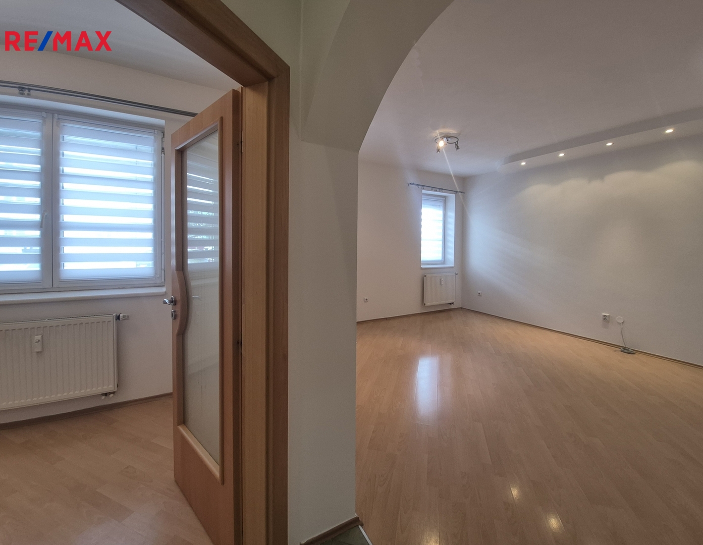 Byt má plastová okna včetně nových vnitřních rolet den/noc, venkovních rolet a pěknou prostornou kuchyňskou linku se spotřebiči.