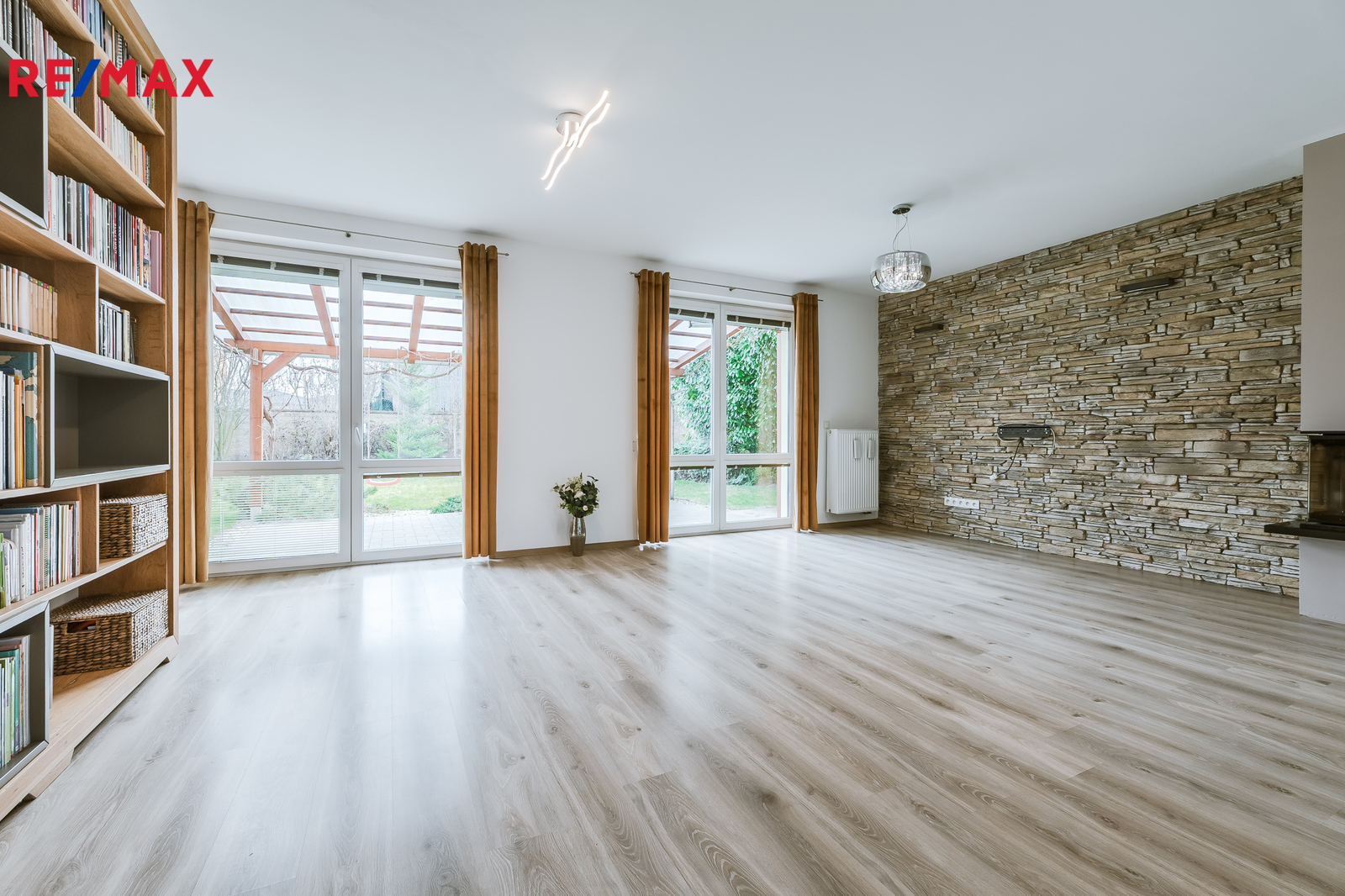 francouzská okna se vstupem na krytou terasu a do zahrady