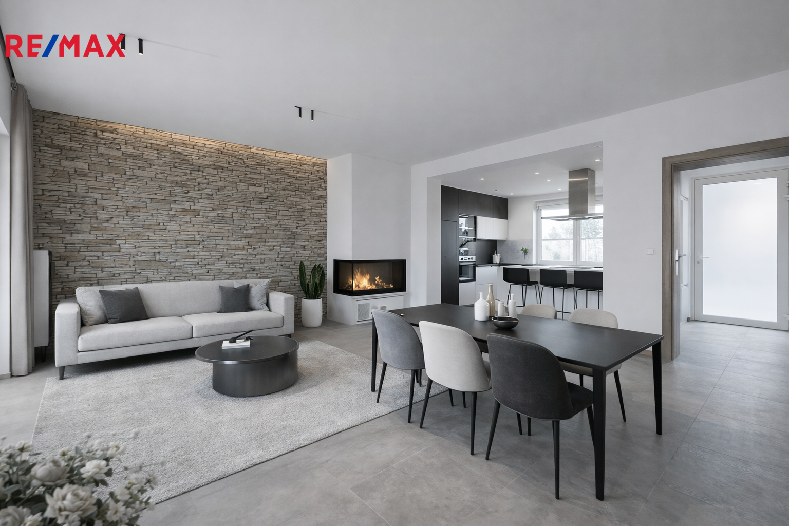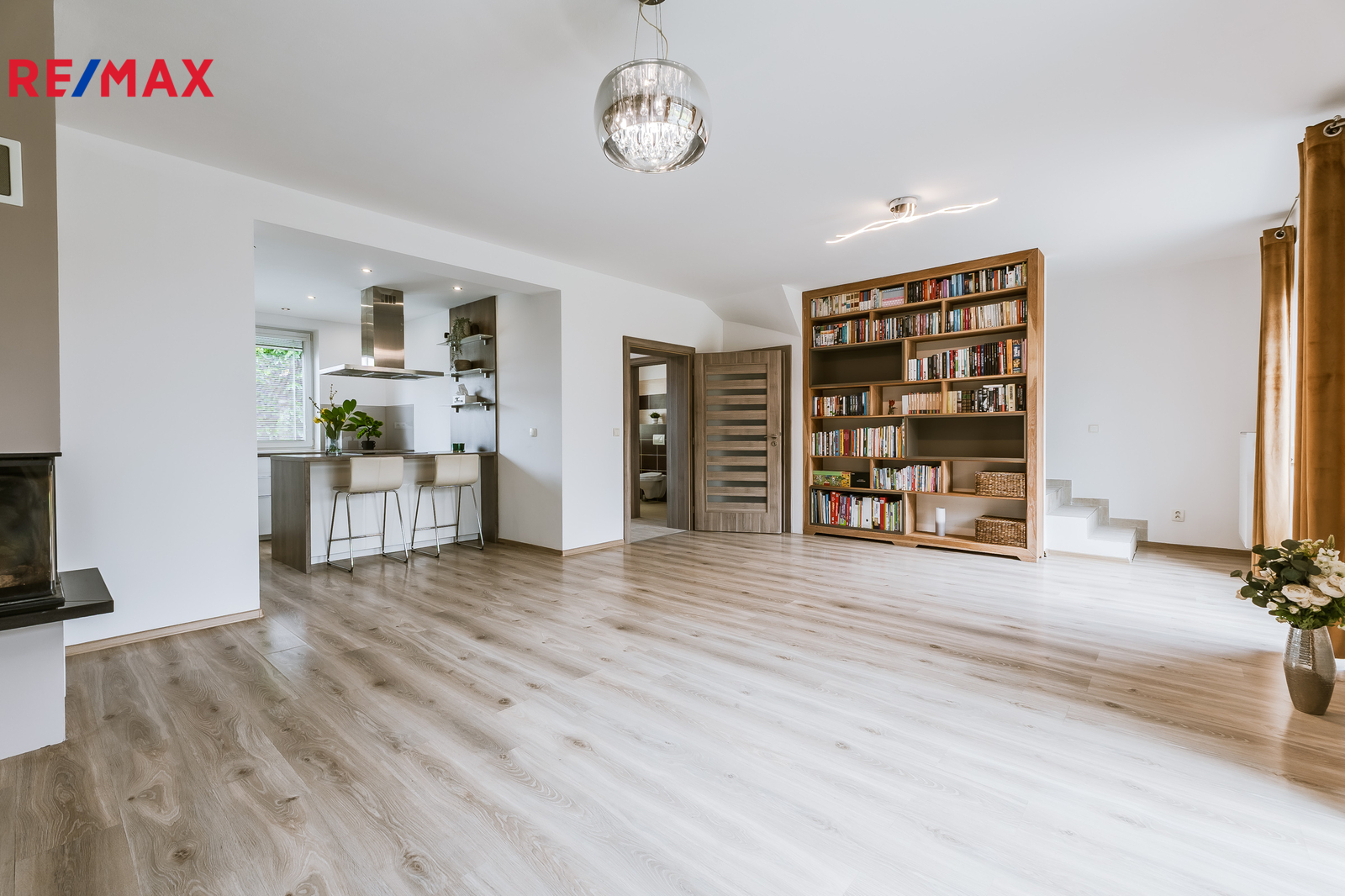 prostorný a světlý obývací pokoj s kuchyňským koutem