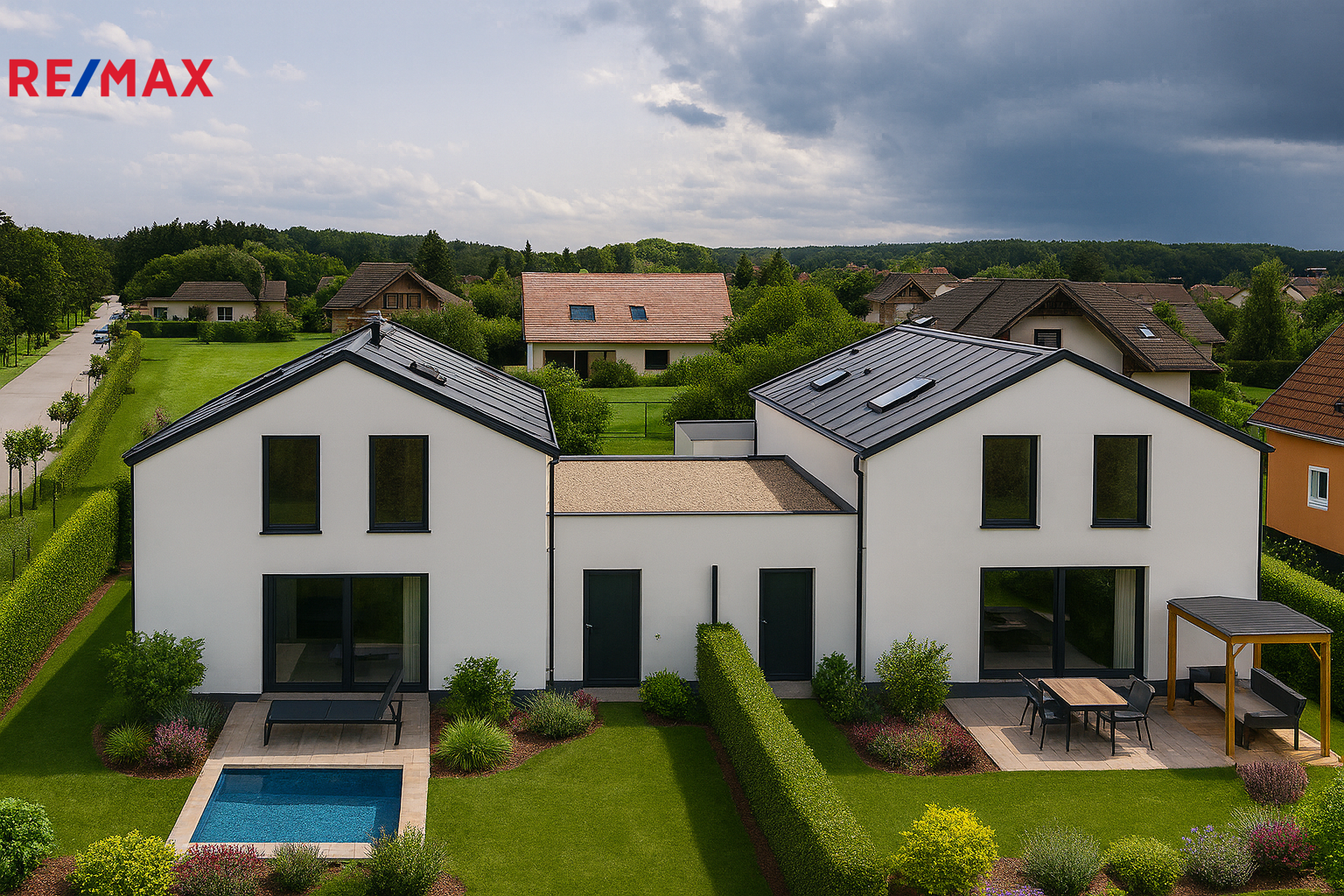 Novostavba moderního dvojdomu se dvěma bytovými jednotkami, každá s vlastní zahradou, přístupem i vjezdem, je v atraktivní a klidné části městské části Praha – Koloděje, která je dlouhodobě vyhledávaná pro svou rodinnou atmosféru, zeleň a výbornou dostupnost do centra Prahy. Lokalita poskytuje kompletní občanskou vybavenost, školy, školky i možnosti volnočasových aktivit. Koloděje jsou tak ideální volbou pro ty, kteří hledají luxusní bydlení v klidném prostředí, aniž by se museli vzdát komfortu velkoměsta.