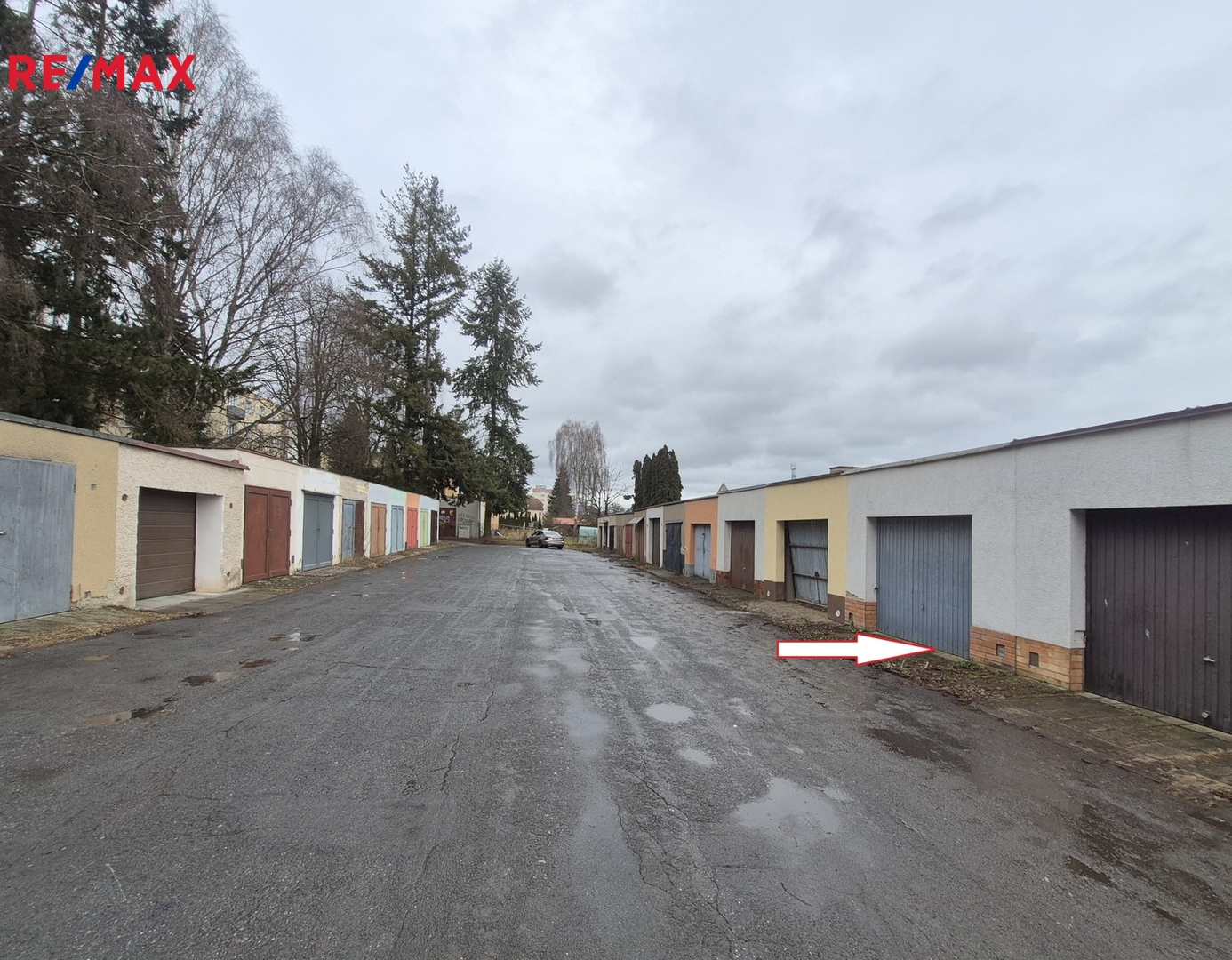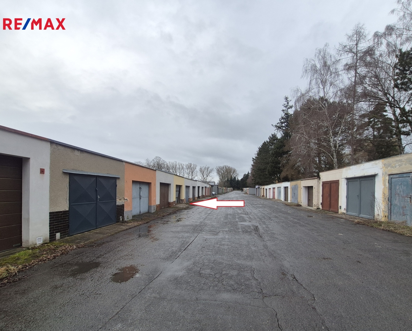 Příjezd ke garáži je bezproblémový po zpevněné asfaltové komunikaci.