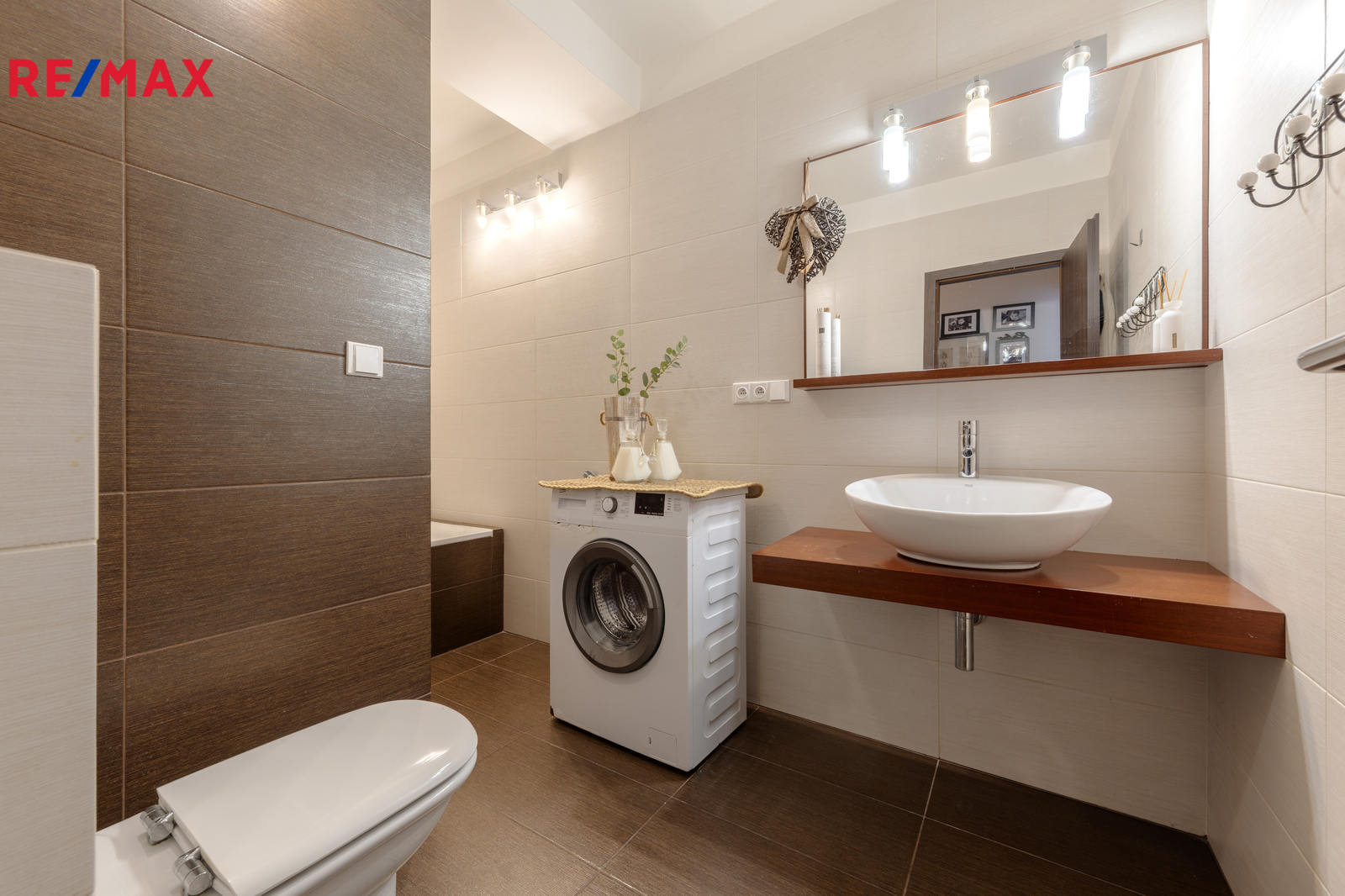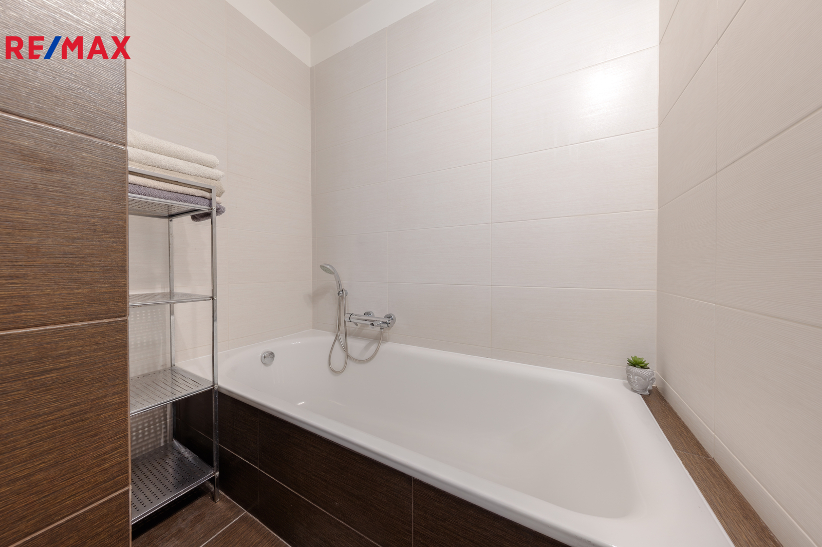 Koupelna je prostorná, s vanou, WC a pračkou. V bytě je dostatek úložných prostor - velká šatní skříň v ložnici.