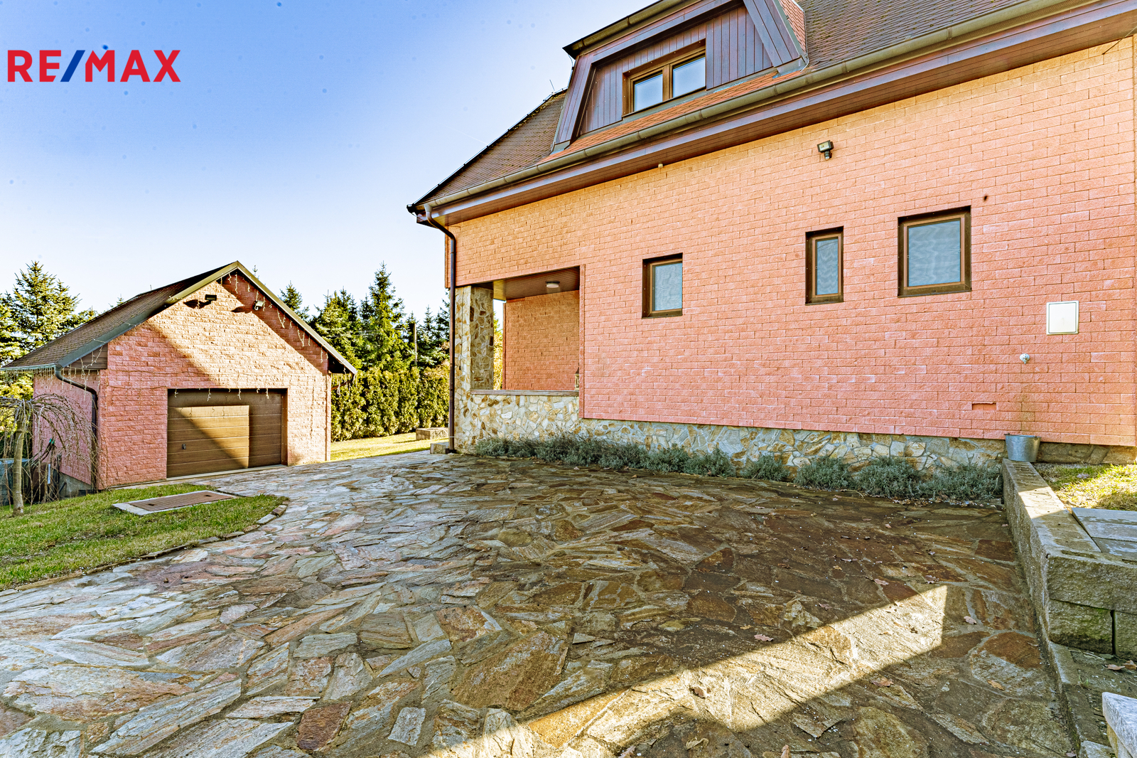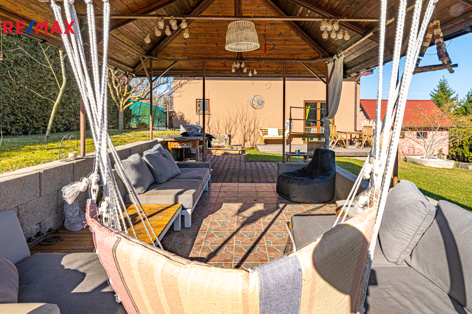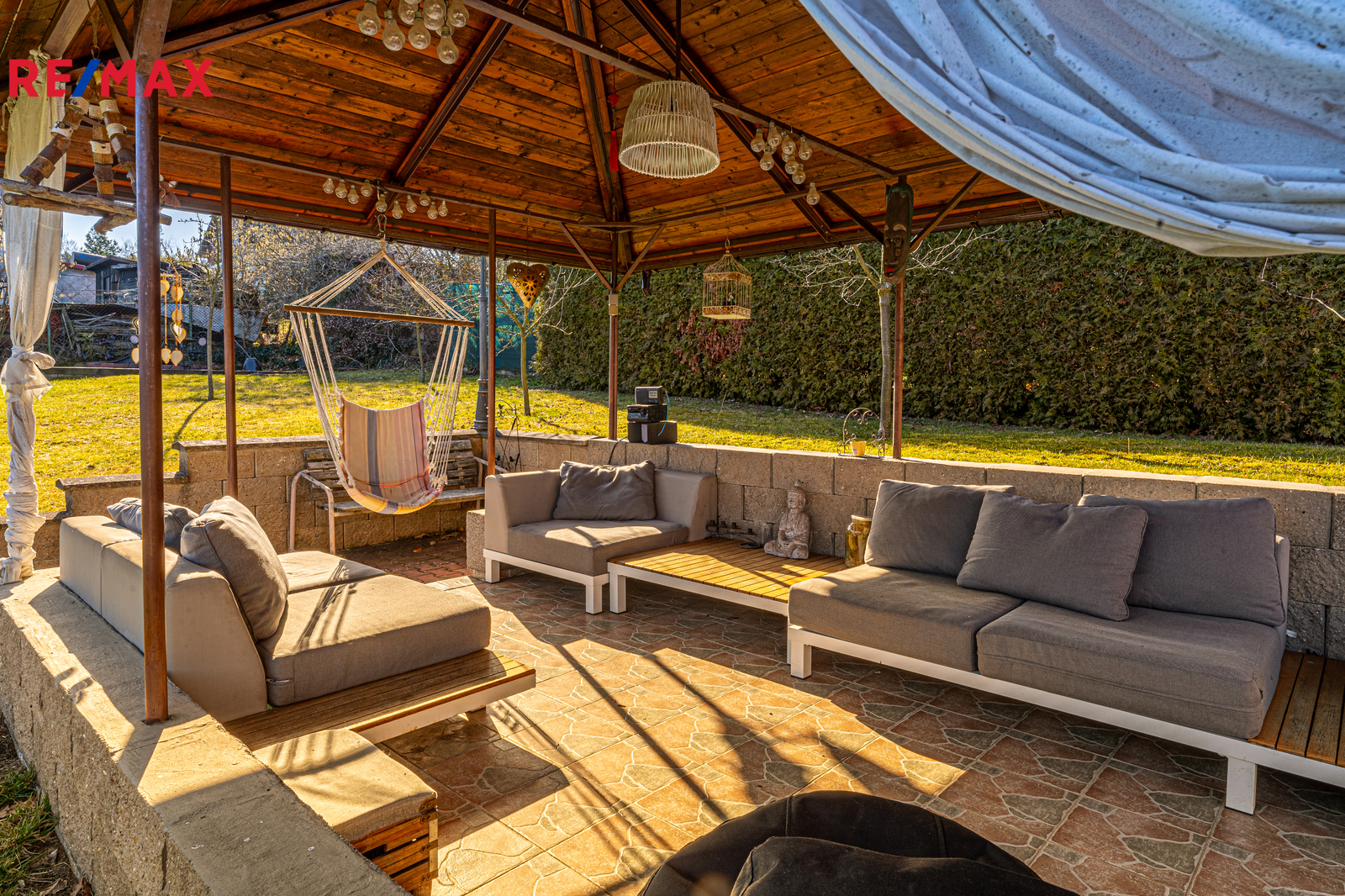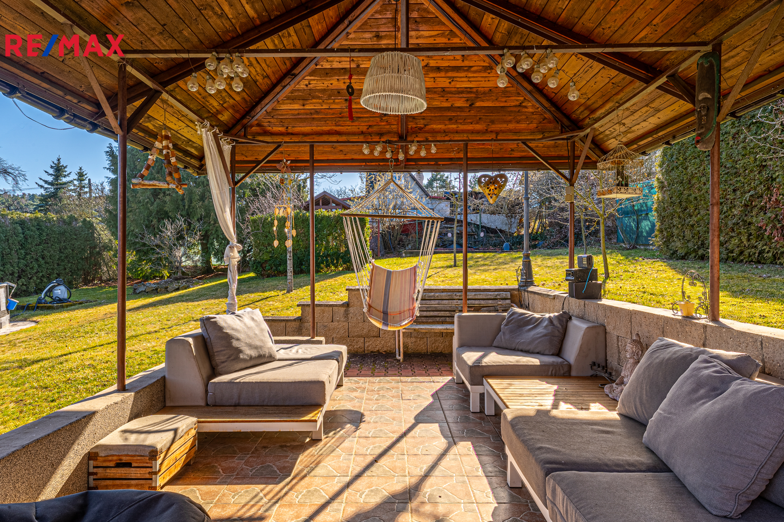 Nejste typ, co chce trávit každou volnou sobotu sekáním obrovských lánů trávy? Výborně. Dostatečně prostorný pozemek je vymyšlený tak chytře, že se na něj vešlo to nejdůležitější: garáž, dvě další parkovací stání ale také 10m² bazénu. Místo údržby zahrady tak budete v létě grilovat, koupat se a nebo si prostě jen užívat s přáteli, kterých se sem vejde, díky terase a stylovému altánku skoro tolik, že si můžete pozvat celé fotbalové družstvo.