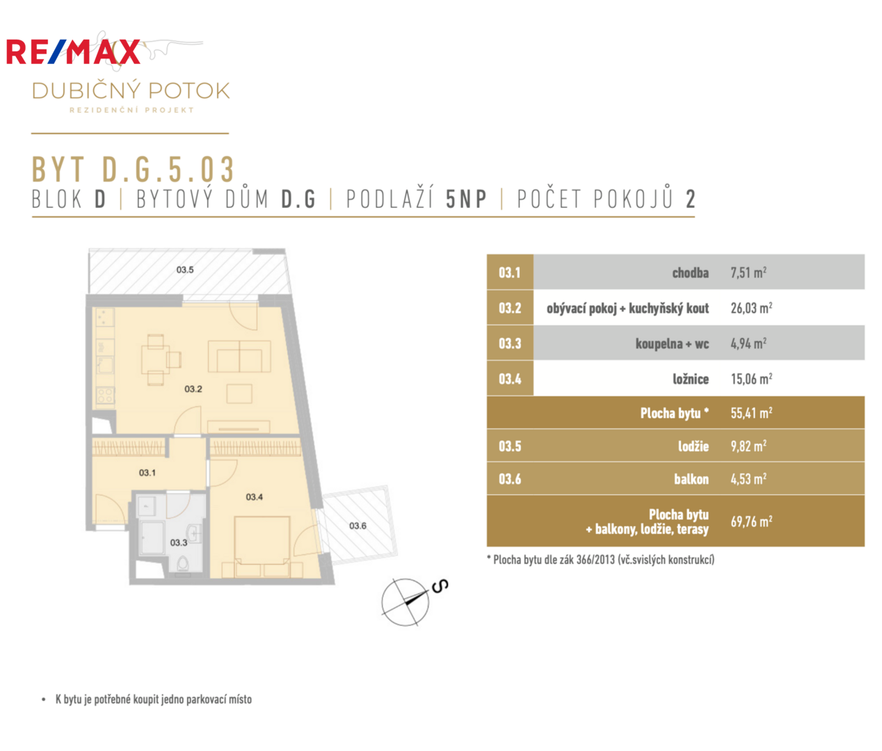 Nabízíme ke koupi prakticky řešenou dispozici 2+kk (označení D.G.5.03) v projektu Dubičný potok. Byt o výměře 55,41 m² se nachází v 5. nadzemním podlaží. Jeho velkou předností je prostorná lodžie o výměře 9,82 m², která nabízí velkorysý prostor pro odpočinek venku. K bytu dále náleží balkon o velikosti 4,53 m². Byt je připraven k okamžitému nastěhování.