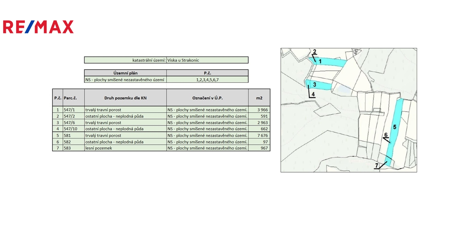 Pozemek č. 1: parc. č. 547/1 – trvalý travní porost – 3 966 m²