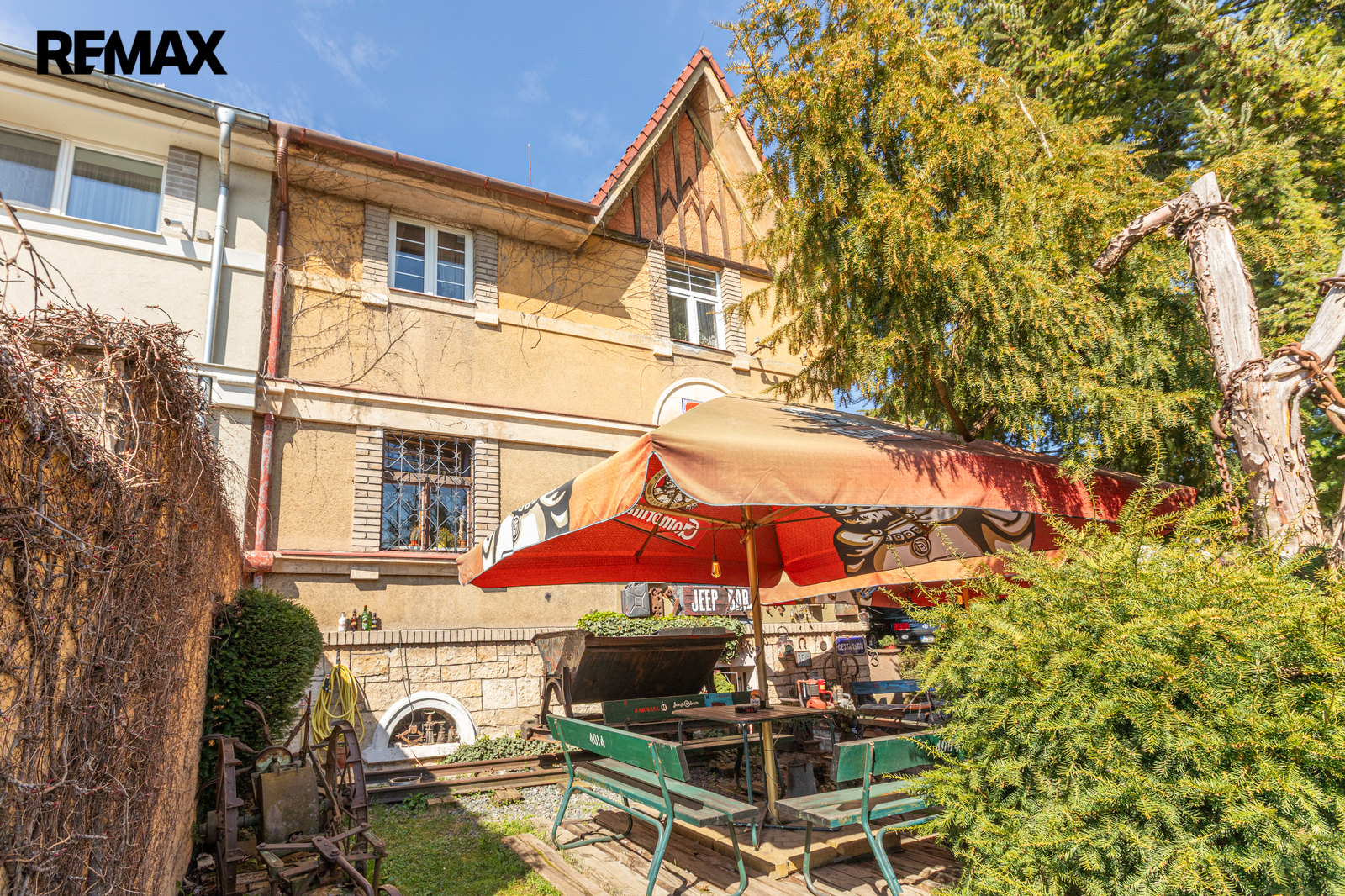 Nabízíme polovinu historické dvojvily ve stylu anglických cottages postavené před sto lety podle projektu žáků Jana Kotěry, architektů Jindřicha Freiwalda a Jaroslava Böhma. Krajní dům řady dvojdomů s velkou zahradou se nachází uprostřed jedinečného jižního smíchovském svahu bývalých vinic mezi Strahovem a Klamovkou.