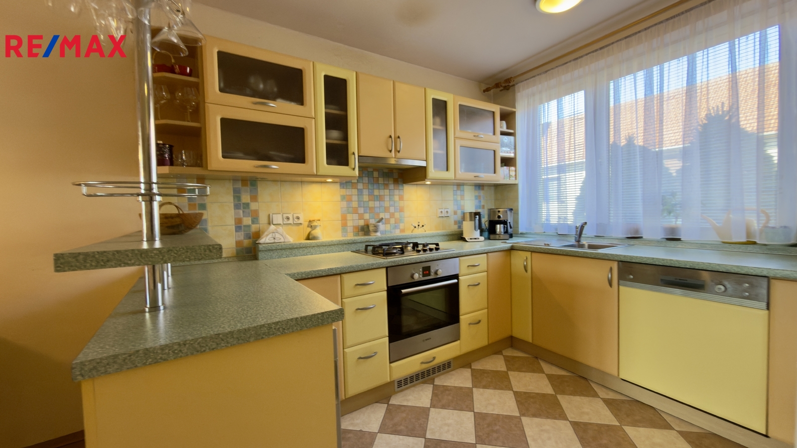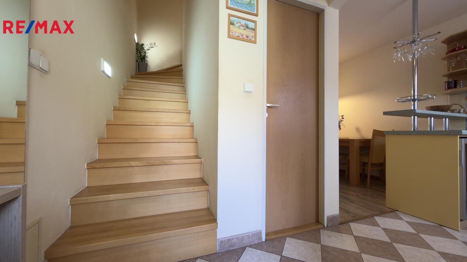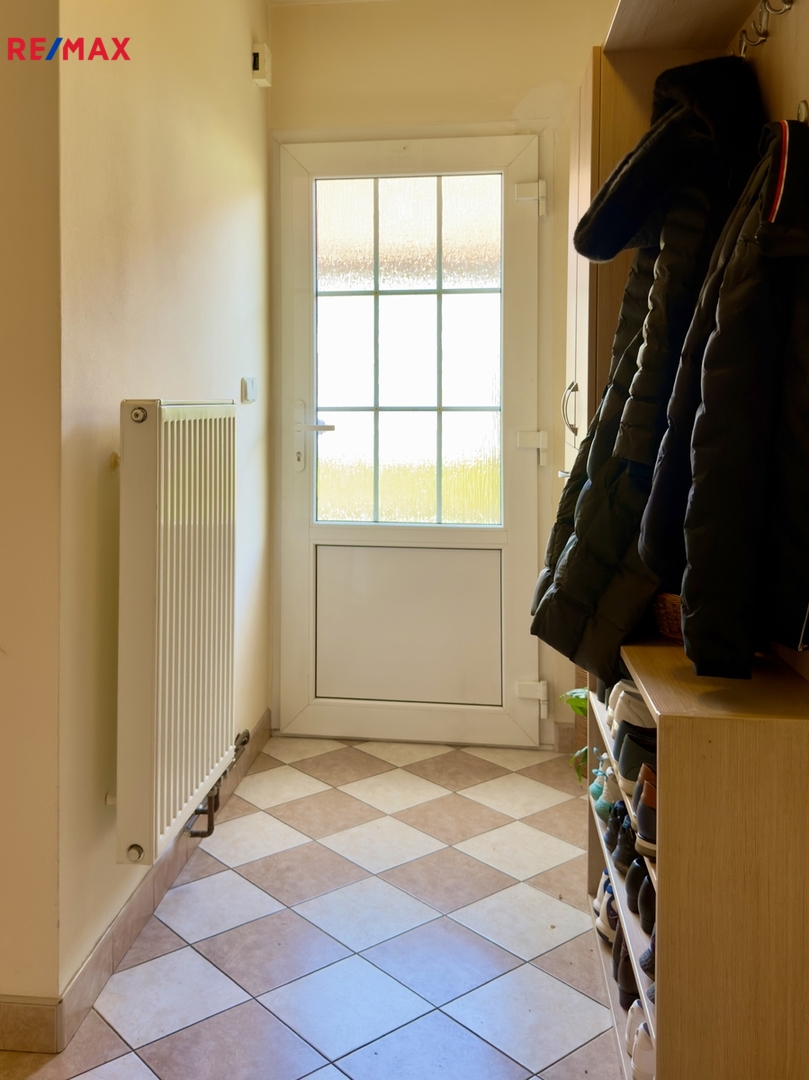 Srdcem domu je otevřený a světlý prostor, který vás provede celým přízemím: praktické zádveří pro odložení kabátů a bot. V této části se nachází také samostatná toaleta a schodiště do patra. Z chodby vejdete do kuchyně, na kterou plynule navazuje jídelní část. Je to ideální prostor pro rodinné posezení, ať už při večeři nebo ranní kávě. Je zde také spíž a další velmi praktický a jako sklad využitý prostor pod schodištěm. Dominantou domu je prostorný obývací pokoj. Právě tady najdete krb, který v zimě vykouzlí neopakovatelnou atmosféru a příjemné teplo. Z obývacího pokoje vstoupíte přímo na menší uzavřený dvorek, perfektní pro nerušené posezení, grilování nebo letní relaxaci.