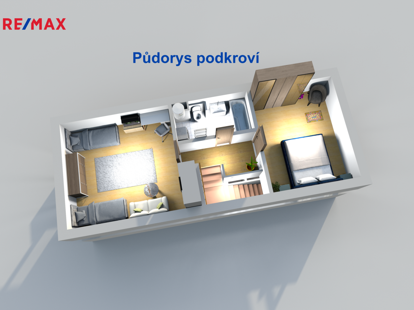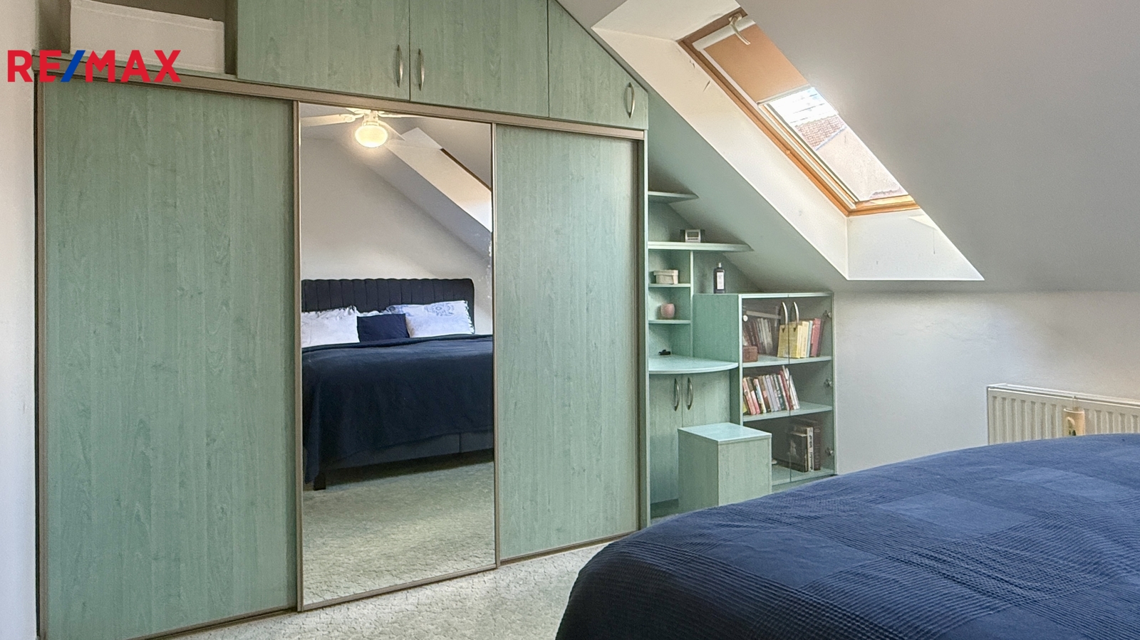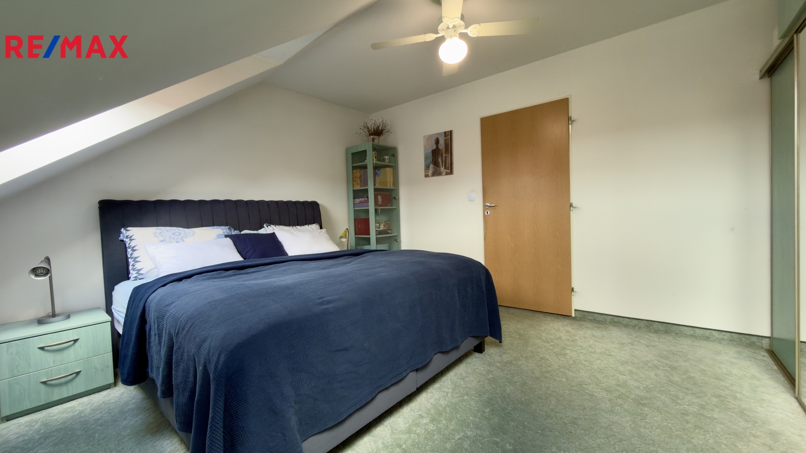 Po schodech z chodby se dostaneme do patra, kde se nachází prostor vyhrazený pro soukromí a odpočinek: dva samostatné pokoje ( ložnice s vestavěnou skříní a dětský pokoj či pracovna taktéž s vestavěnou skříní ) a dále koupelna s toaletou. O celkový tepelný komfort se stará plynový kondenzační kotel, který zajišťuje jak vytápění, tak i ohřev vody. Dům byl kolaudován v roce 2003, je ve velmi dobrém technickém stavu a nevyžaduje další nutné investice – stačí se nastěhovat a bydlet.